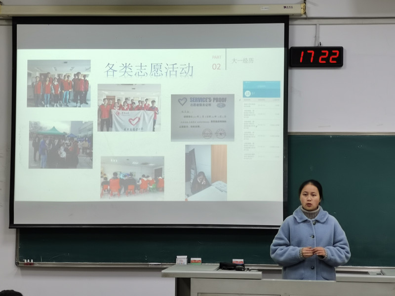 活動(dòng)中,兩位代表都結(jié)合自身學(xué)習(xí)經(jīng)歷和獲獎(jiǎng)經(jīng)驗(yàn),分別從學(xué)習(xí)、工作和生活方面做了重點(diǎn)交流。趙云主要通過講述自己準(zhǔn)備比賽和參與比賽的經(jīng)歷,鼓勵(lì)同學(xué)們學(xué)會(huì)自己抓住機(jī)會(huì),勇往向前。喻榮融就學(xué)習(xí)考證方面展開詳細(xì)講解,建議同學(xué)們利用好平日的學(xué)習(xí)時(shí)間,并在學(xué)有余力的時(shí)候多多參加各類競賽。活動(dòng)最后,兩位代表告訴同學(xué)們無論什么時(shí)候開始努力都不算晚。