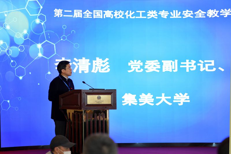 2020年12月25-28日,第二屆全國高?;ゎ?lèi)專(zhuān)業(yè)安全教學(xué)研討會(huì )在福建廈門(mén)勝利召開(kāi)。國家應急管理部原黨組成員、總工程師王浩水,教育部高等學(xué)?;ゎ?lèi)專(zhuān)業(yè)教學(xué)指導委員會(huì )秘書(shū)長(cháng)夏淑倩,集美大學(xué)黨委副書(shū)記、校長(cháng)李清彪,華東理工大學(xué)副校長(cháng)李濤,中國石化集團安監局副局長(cháng)王玉臺,常州大學(xué)黨委書(shū)記陳群,以及教育部高等學(xué)?;ゎ?lèi)專(zhuān)業(yè)教學(xué)指導委員會(huì )委員、全國70余所高校的領(lǐng)導和老師、協(xié)會(huì )、企業(yè)代表共計200余人參加會(huì )議。此次會(huì )議由教育部高等學(xué)?;ゎ?lèi)專(zhuān)業(yè)教學(xué)指導委員會(huì )主辦,我校與集美大學(xué)、廈門(mén)大學(xué)、中國石油大學(xué)(華東)以及熙寶源集團共同承辦。