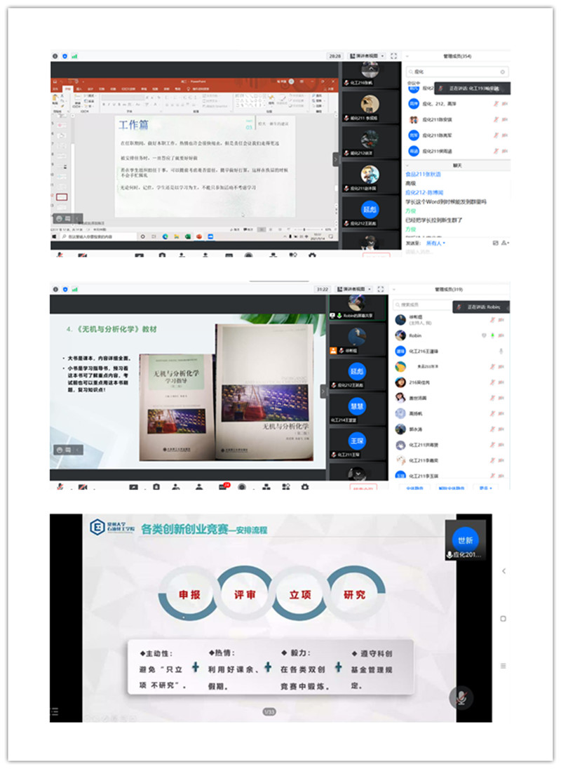 2021級本科新生入學(xué)教育由思想引領(lǐng)與價(jià)值塑造教育、校情概況與專(zhuān)業(yè)素養教育、入學(xué)適應與行為養成教育、學(xué)生安全與心理健康教育、政策解讀與文明規范教育五大模塊組成,內容包含校史校情教育、黨團知識教育、專(zhuān)業(yè)導航教育、安全教育等十三項教育內容。針對疫情防控形勢下新生延期開(kāi)學(xué)的情況,學(xué)院全面開(kāi)展新生線(xiàn)上入學(xué)教育,通過(guò)在線(xiàn)課程、線(xiàn)上專(zhuān)題會(huì )議等形式面向全體新生展開(kāi)。學(xué)院進(jìn)行針對學(xué)院具體實(shí)際來(lái)開(kāi)展學(xué)院、專(zhuān)業(yè)介紹、專(zhuān)業(yè)思想教育、學(xué)生適應性教育、班主任開(kāi)班會(huì )、在線(xiàn)干部競選、學(xué)院社團線(xiàn)上交流會(huì )等,使新生對大學(xué)生活與學(xué)習有全面了解。全體新同學(xué)認真參加線(xiàn)上入學(xué)教育,以飽滿(mǎn)熱情迎接大學(xué)新生活。