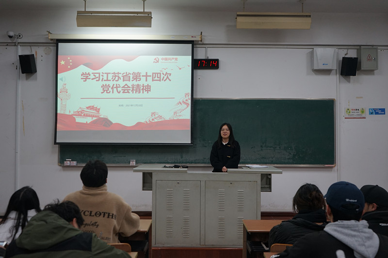 為引導全省廣大團員青年深入學(xué)習領(lǐng)會(huì )江蘇省第十四次黨代會(huì )精神,讓學(xué)生自覺(jué)把思想和行動(dòng)統一到落實(shí)大會(huì )確定的各項目標任務(wù)上來(lái),沿著(zhù)習近平總書(shū)記指引的方向奮勇前進(jìn),我院于12月20日17時(shí)在W1210開(kāi)展省第十四次黨代會(huì )精神學(xué)習會(huì ),由孫潘主講,學(xué)生骨干及青馬學(xué)員參加。