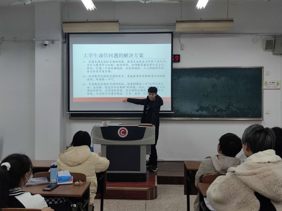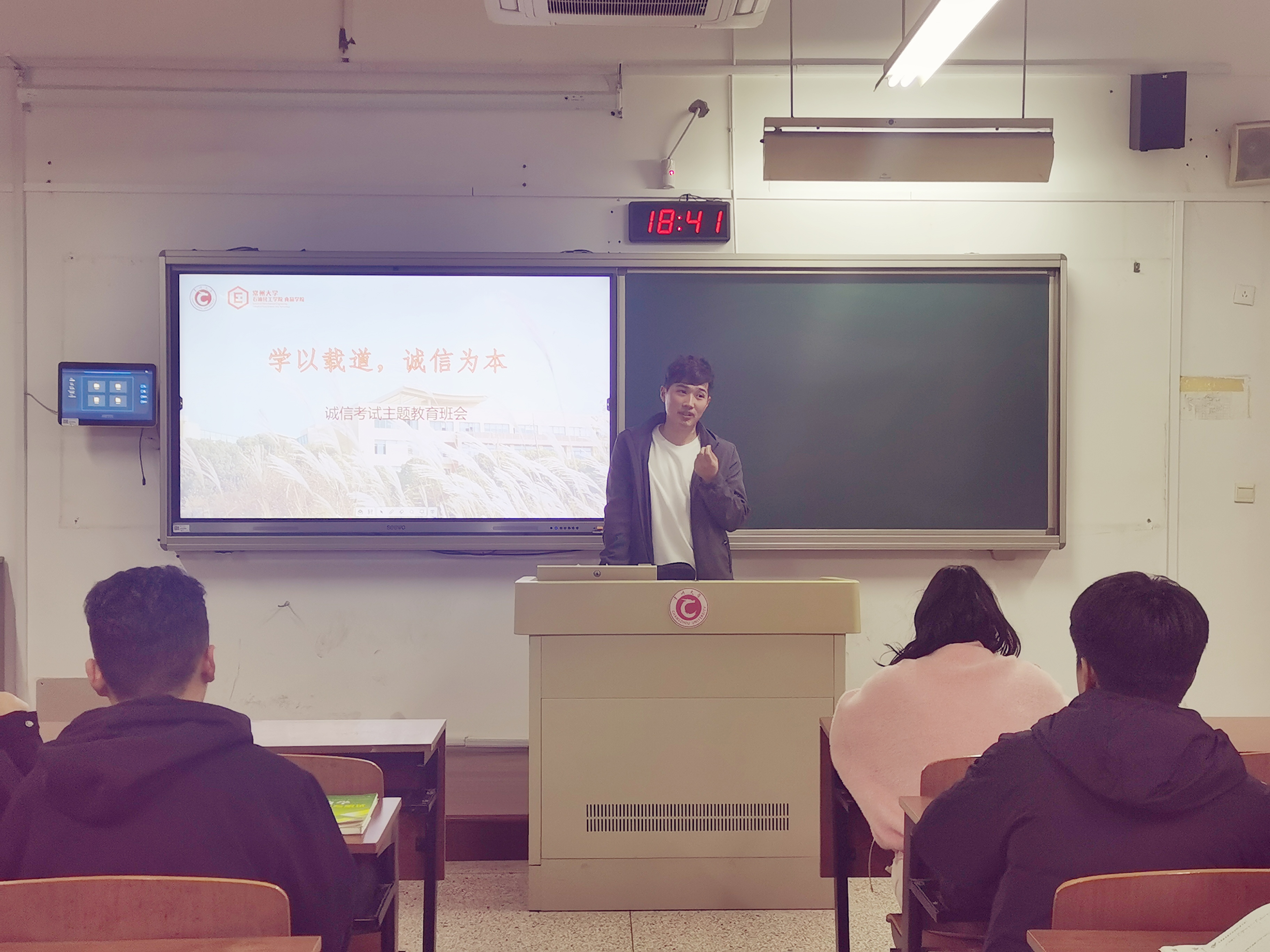 誠實(shí)守信是中華民族的傳統美德,也是衡量一個(gè)人品德修養和人格高下的重要標準之一,同時(shí)也是一名優(yōu)秀大學(xué)生必不可少的基本素質(zhì)。為進(jìn)一步弘揚誠信文化,倡導誠信行為,培養誠信品格,嚴正學(xué)風(fēng)考風(fēng),在英語(yǔ)四六級和期末考試即將到來(lái)之際,我院積極組織各班級開(kāi)展誠信考試主題班會(huì )活動(dòng)。