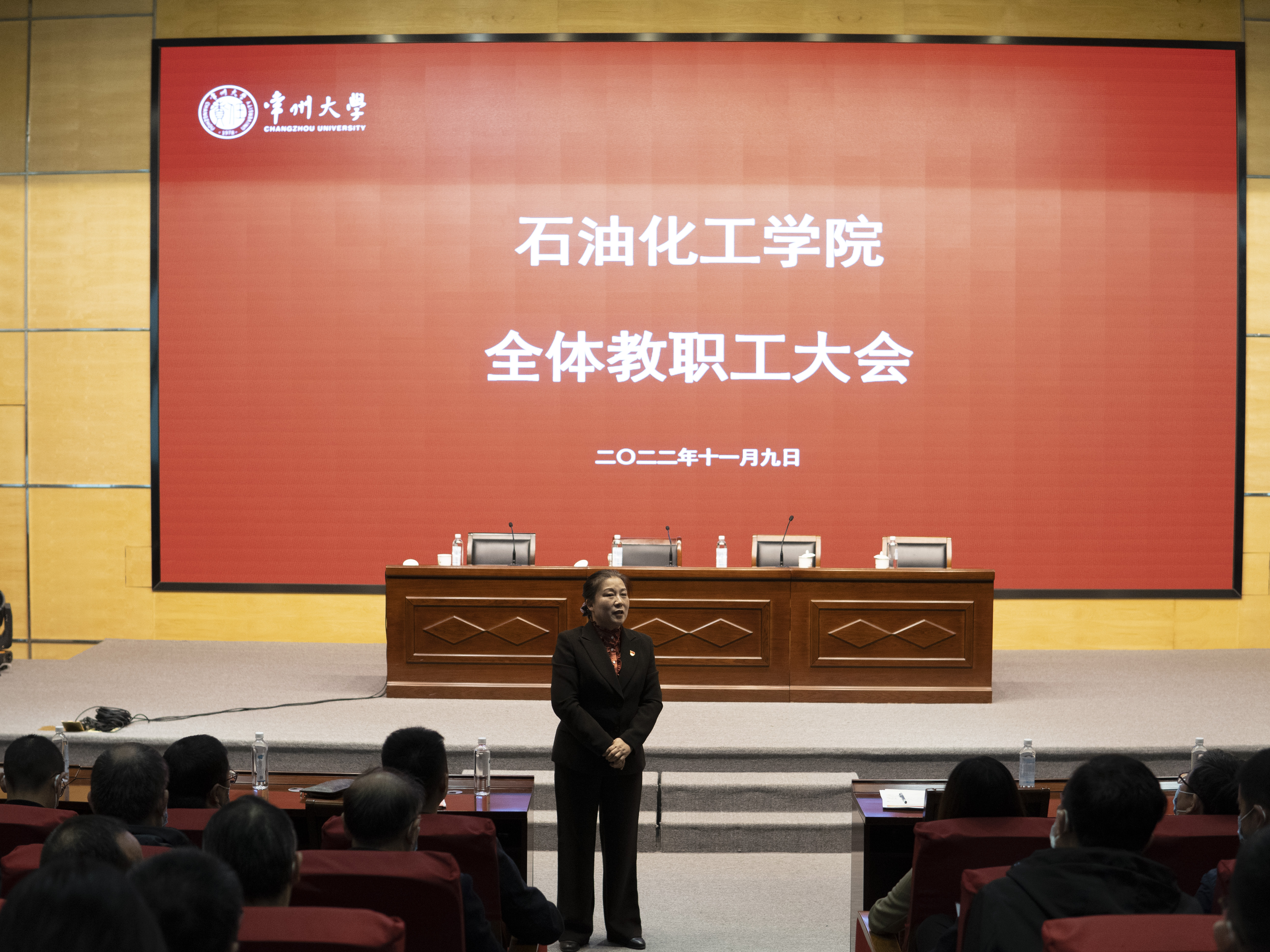 2022年11月9日上午,石油化工學(xué)院在校文彰樓報告廳召開(kāi)全院教職工大會(huì ),學(xué)院黨政領(lǐng)導、分工會(huì )主席以及全體教職工參加會(huì )議,黨委書(shū)記管春英主持會(huì )議。