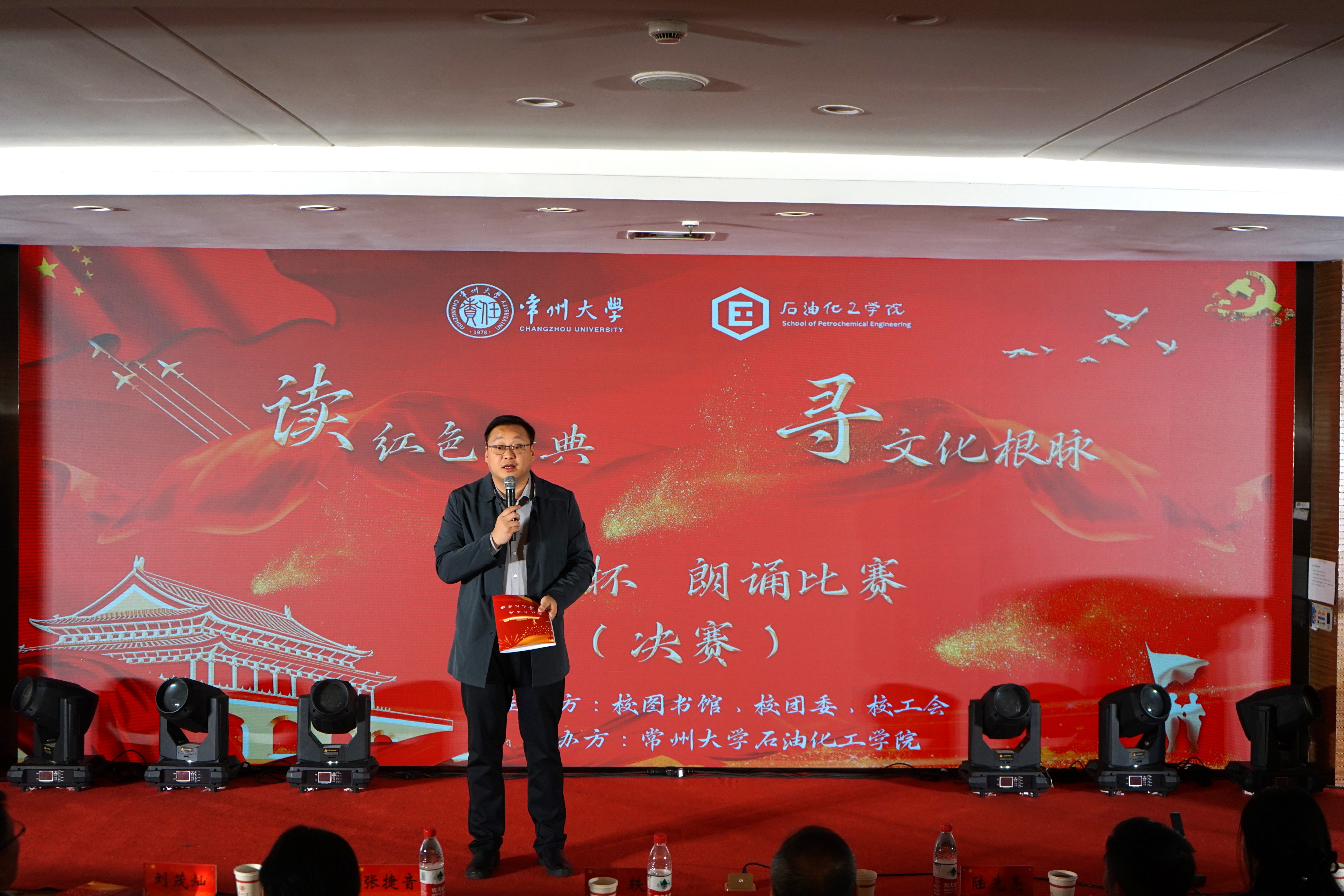 本次朗誦大賽是常州大學(xué)第十三屆讀書(shū)月系列活動(dòng)之一,以“讀紅色經(jīng)典,尋文化根脈”為主題,重溫往日崢嶸歲月,頌揚紅色贊歌。常州大學(xué)直屬單位書(shū)記姚致遠、團委書(shū)記田軼、學(xué)生處副處長(cháng)陸先亮、工會(huì )副主席張捷音、吳敬璉經(jīng)濟學(xué)院副書(shū)記王彩芳、石油化工學(xué)院副書(shū)記劉茂燦、圖書(shū)館閱讀推廣部主任孫艷紅出席本次大賽。