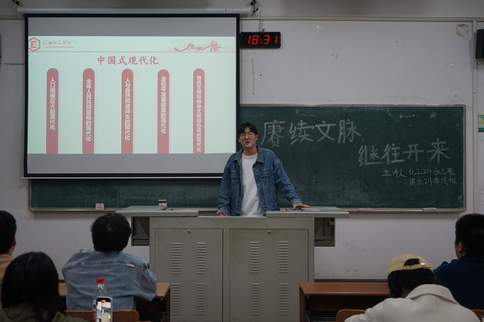 李成旭向同學(xué)們介紹了近現代中國現代化進(jìn)程與歷史、改革開(kāi)放后中國現代化問(wèn)題的提出,使同學(xué)們明確了黨的十八大以后中國式現代化的發(fā)展目標。張志豪從傳統節日、六大建筑派系、傳統文化遺產(chǎn)著(zhù)手,帶領(lǐng)同學(xué)領(lǐng)略了傳統文化的魅力,同時(shí)強調了傳承傳統文化的重要性和必要性。望我院的學(xué)生通過(guò)此次講座能夠結合所學(xué)專(zhuān)業(yè),利用所學(xué)知識,推動(dòng)傳統文化的傳承與創(chuàng )新,堅定文化自信,為中國式現代化的推進(jìn)作出獨屬于大學(xué)生的特別貢獻。