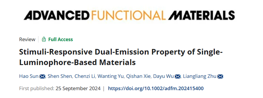 近日,吳大雨教授團隊在國際頂級期刊《Advanced Functional Materials》上發(fā)表了題為“Stimuli-Responsive Dual-Emission Property of Single-Luminophore-Based Materials”的綜述論文,第一作者為團隊青年教師孫浩博士,該項工作從單發(fā)光團刺激響應光學(xué)材料的作用機理、調控方法和應用等方面系統綜述了該類(lèi)智能材料的研究進(jìn)展。