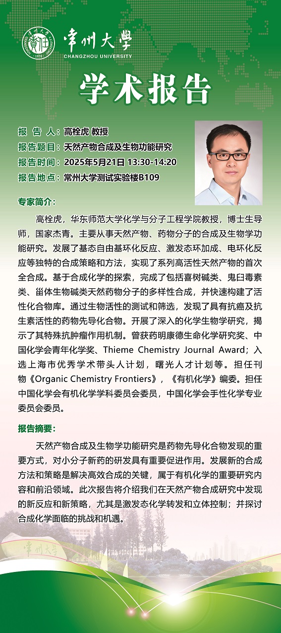【學(xué)術(shù)報告】5月21日學(xué)術(shù)報告—高栓虎教授 華東師范大學(xué) 石航研究員 西湖大學(xué) 陸良秋教授 華中師范大學(xué)