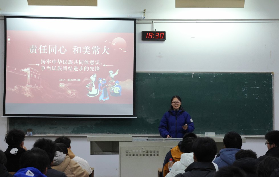 為了引導石化青年明確責任,并將個(gè)人成長(cháng)融入集體與學(xué)校發(fā)展,共同建設和美校園,12月16日晚,學(xué)生第二黨支部黨員能化234班王曦在W1203教室開(kāi)展了“青年講師團”系列講座第五講——“責任同心,和美常大”。