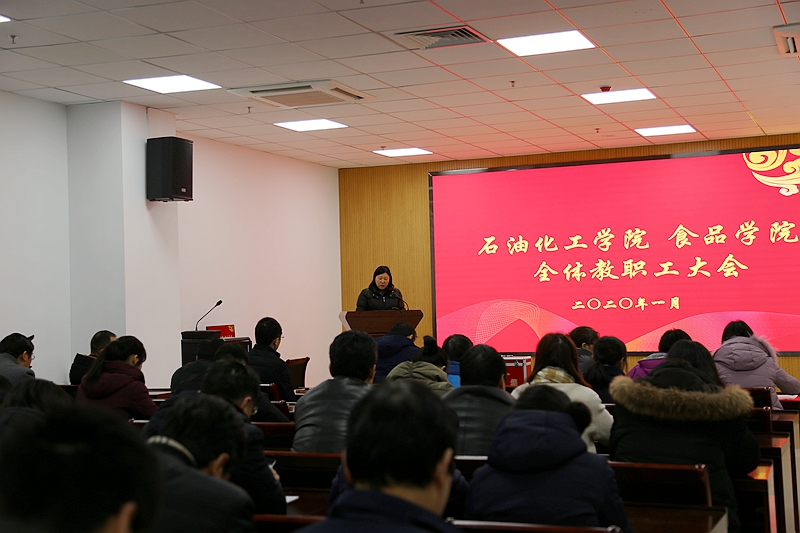 2020年1月11日上午,石油化工學(xué)院 食品學(xué)院在測試實(shí)驗樓B109會(huì )議室召開(kāi)了第二屆教職工代表大會(huì )第三次會(huì )議擴大會(huì )議,全院教職工參加了本次會(huì )議,會(huì )議由黨委書(shū)記吳荷平主持。