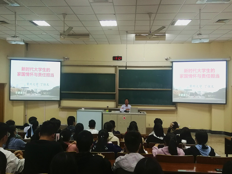 為培養學(xué)生的愛(ài)國主義情懷,我院10月15日邀請常州大學(xué)教授丁恒龍為2020級新生、入黨積極分子、學(xué)生黨員開(kāi)展主題為“新時(shí)代大學(xué)生的家國情懷與責任擔當”的愛(ài)國主義教育講座暨青馬公開(kāi)課,此次講座由學(xué)院黨委副書(shū)記宣慧主持。