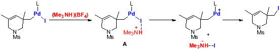 研究發(fā)現,便宜易得的三乙胺四氟硼酸鹽(Et3NH)(BF4)作為氫鍵給體,可以和C(sp3)-PdII-I形成氫鍵加和物A。氫鍵的形成削弱了PdII-I鍵,有效促進(jìn)碘負離配體的配位解離,使得還原消除的反應能壘大大降低,最終在保持高效率的同時(shí)可以使反應溫度降至60度。
