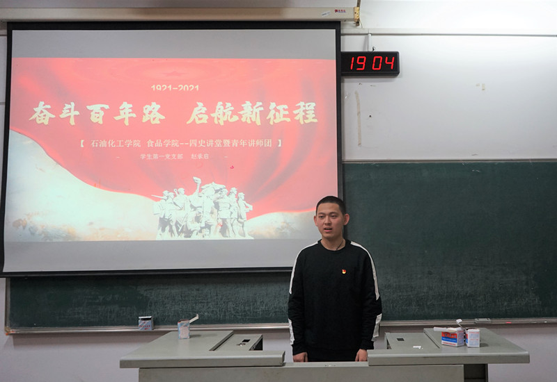 為了慶祝建黨一百周年,號召廣大青年“奮斗百年路,啟航新征程”,激發(fā)廣大青年的愛(ài)國熱情,4月6日18:00,我院于w1202開(kāi)展“四史講堂”之黨史故事學(xué)習活動(dòng)暨青年講師團理論宣講,學(xué)生第一黨支部黨員趙承啟為主講人。