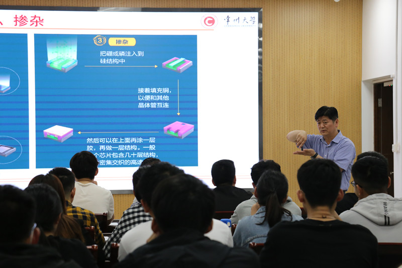 陳智棟從應用化學(xué)與移動(dòng)通訊的概念入手,隨后詳細講解手機的演變歷史、芯片的制造技術(shù)、印制線(xiàn)路板、PCB的分類(lèi)及制備工藝、市場(chǎng)和發(fā)展前景等方面,這其中都與應用化學(xué)有著(zhù)千絲萬(wàn)縷的聯(lián)系。整場(chǎng)講座豐富有趣,同學(xué)們認真感受應用化學(xué)的魅力。