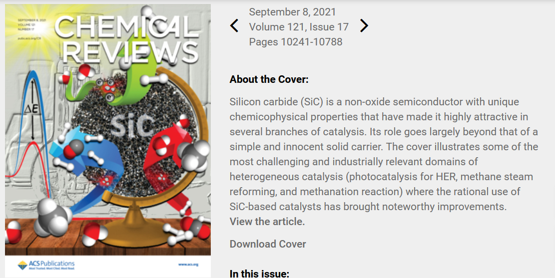 近日,郭向云教授應邀與意大利國家研究委員會(huì )、中科院大連化學(xué)物理研究所、SICAT公司、法國國家科研中心等研究人員合作撰寫(xiě)的關(guān)于高比表面積碳化硅催化應用的綜述文章“Porous Silicon Carbide (SiC): A Chance for Improving Catalysts or Just Another Active-Phase Carrier?”在化學(xué)領(lǐng)域國際頂級綜述類(lèi)雜志Chemical Reviews上作為封面文章發(fā)表。該論文系統地介紹了碳化硅作為催化劑載體在催化領(lǐng)域中的應用情況:(1)精細化學(xué)品合成,如烷烴氧化制烯烴和含氧化合物、不飽和鍵加氫、C-X鍵形成等;(2)燃料制備,如各種液體燃料、天然氣和氫氣;(3)環(huán)境保護和修復,如水和空氣中有機污染物的氧化脫除及分解;(4)燃料電池催化劑,如甲醇和乙醇的電氧化、氧氣還原等;(5)光催化過(guò)程,如光解水產(chǎn)氫、精細化學(xué)品光催化合成、有機污染物降解等;(6)碳化硅復合物無(wú)金屬催化劑等。并就碳化硅催化劑研究中應該關(guān)注的重點(diǎn),以及未來(lái)發(fā)展趨勢作了展望。