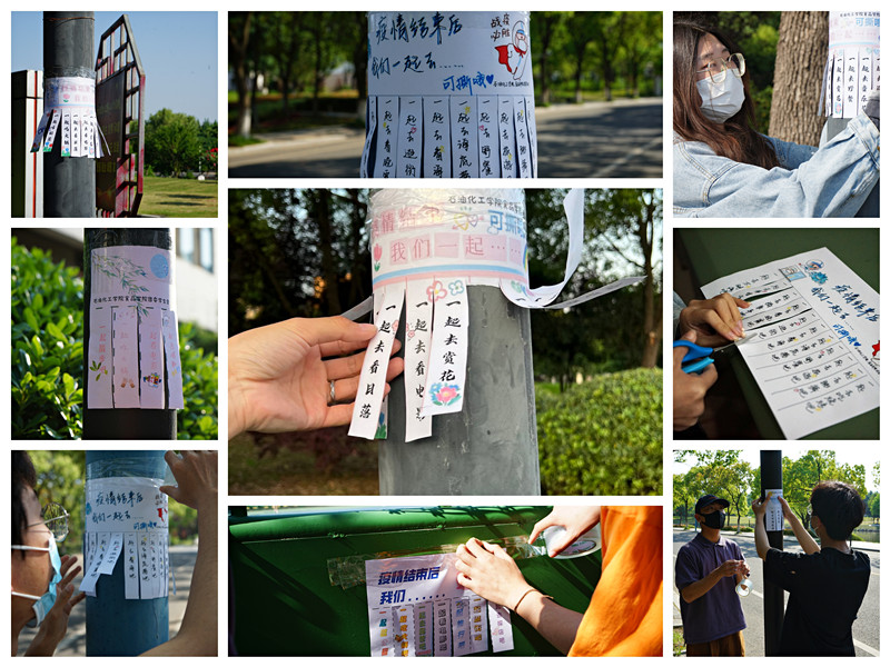 各具風(fēng)格的手制便利貼上,極具創(chuàng )意的圖案文字、小心翼翼的邊框剪裁,每一筆都蘊含著(zhù)激情、每一筆都蘊含著(zhù)希望。燈柱上、樹(shù)干上、花壇旁……校園內的各個(gè)角落都貼滿(mǎn)了“濃濃真情”,成為校園內別樣的風(fēng)景線(xiàn)?!耙黄鸪曰疱仭?、“一起看電影”、“一起去露營(yíng)”、“一起去海邊”、“一起去音樂(lè )節”······這些心愿便利貼飽含著(zhù)同學(xué)們對解封校園的期待,承載著(zhù)“成功抗擊疫情”的愿望。