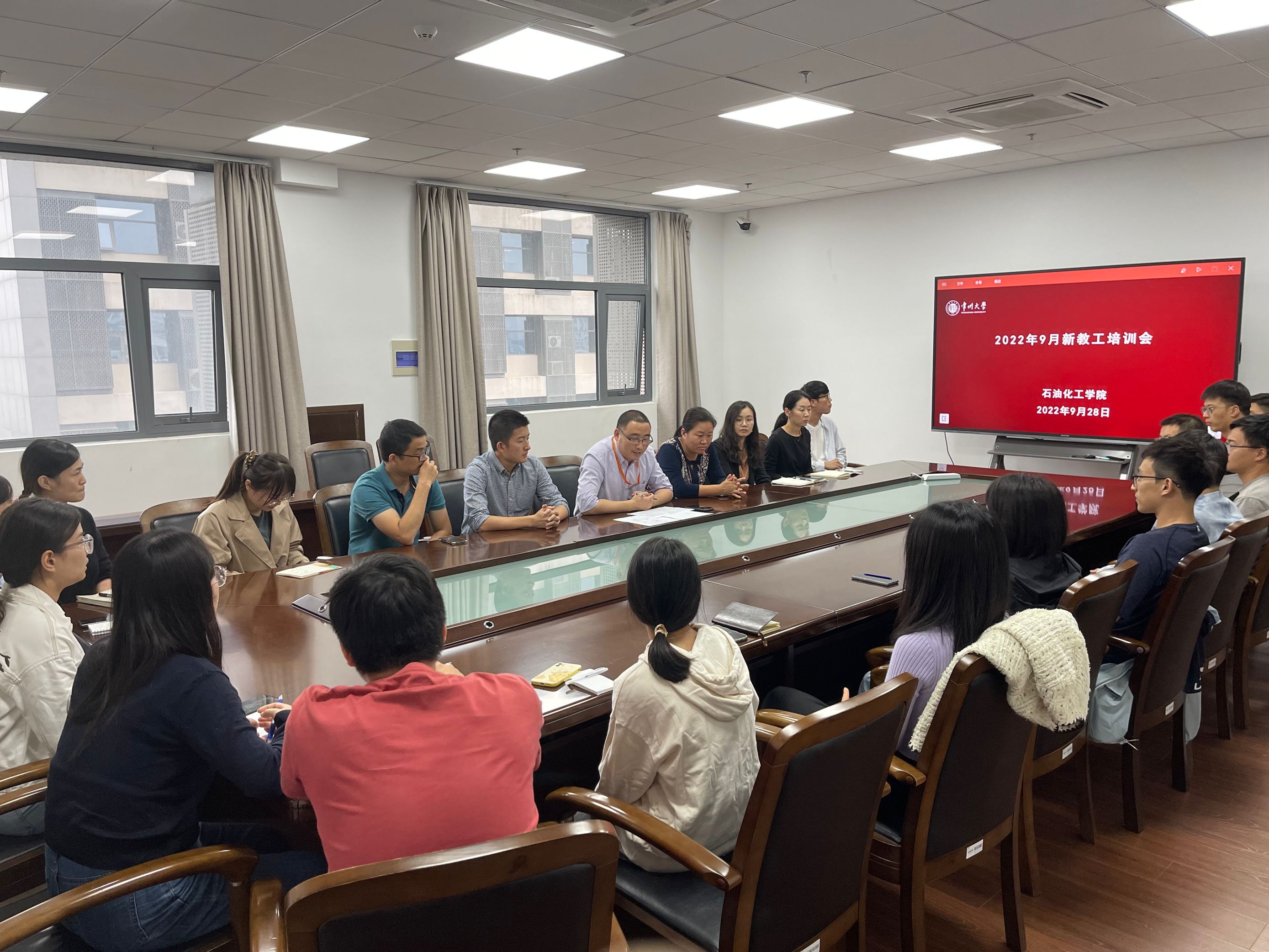 9月28日下午,學(xué)院在測試樓B613會(huì )議室召開(kāi)了2022年9月新入職教工培訓會(huì )。我院劉文杰副院長(cháng)、工會(huì )主席曹引梅、化工、能化、有機、物化教研室主任及無(wú)機、化工原理教研室副主任、近期入職的十余位新教師參加了會(huì )議,會(huì )議由劉文杰副院長(cháng)主持。