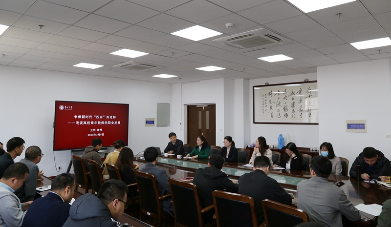 為關(guān)注青年教師成長(cháng),推動(dòng)教師素質(zhì)能力提升,2023年3月9日上午,石油化工學(xué)院分工會(huì )特邀全國教學(xué)名師,南京農業(yè)大學(xué)博士生導師王恬教授為我院近年新入職青年教師作題為《爭當新時(shí)代“四有”好老師——淺談高校青年教師的職業(yè)發(fā)展》的專(zhuān)題講座,30余名青年教師代表到場(chǎng)參加,學(xué)院黨委書(shū)記管春英、副院長(cháng)黃薇出席會(huì )議。