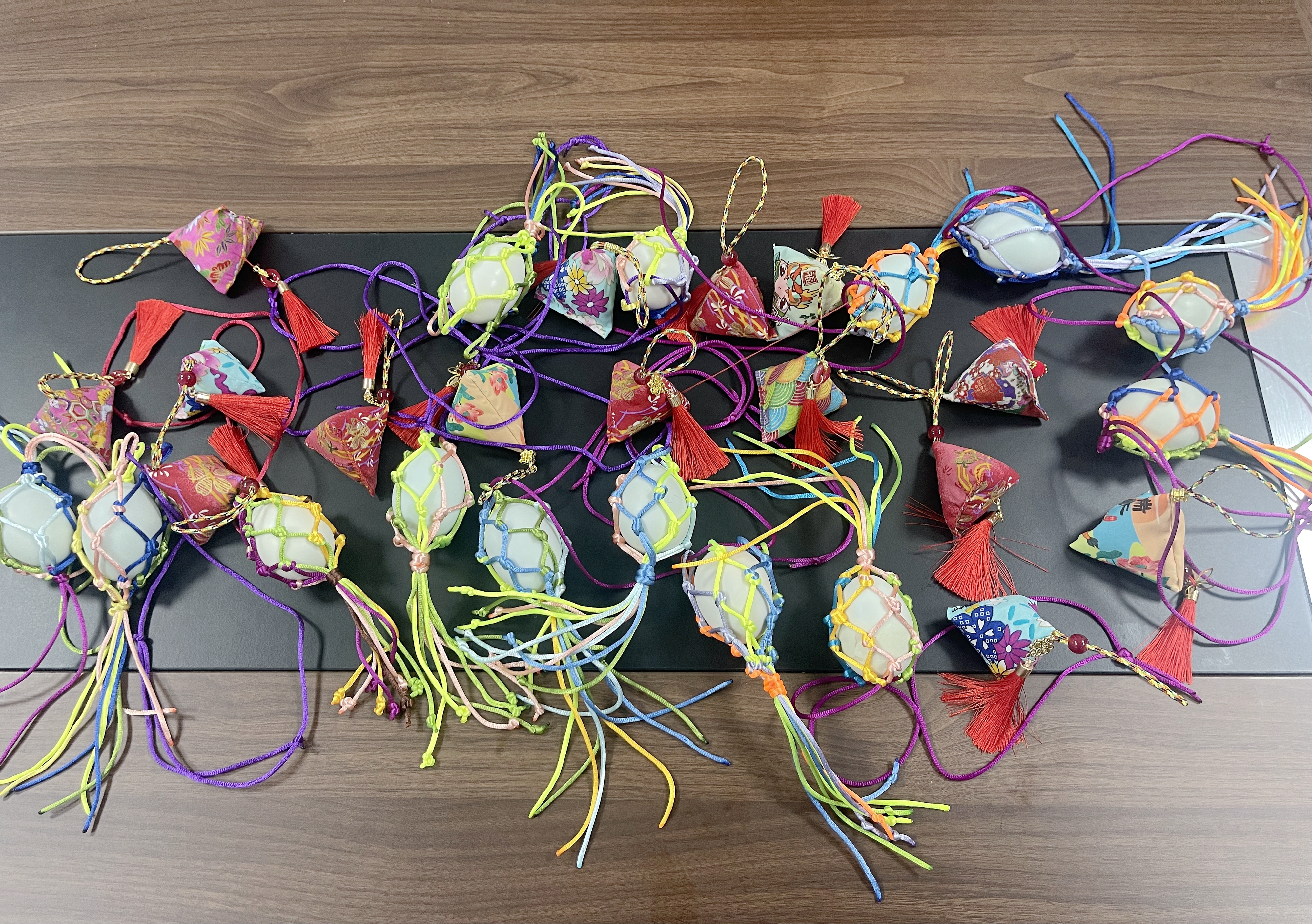 活動(dòng)現場(chǎng),由滕巧巧老師帶領(lǐng)大家一起追溯端午由來(lái),端午傳說(shuō)、端午習俗、端午詩(shī)詞;向大家分發(fā)了由艾草等組成的藥材包和制作香囊、蛋兜所需的布片、五彩線(xiàn)、針線(xiàn)等制作工具后,大家紛紛開(kāi)始了香囊、蛋兜制作體驗,彩布縫合,細線(xiàn)打結,藥包填充,彩線(xiàn)結扣等一系列制作步驟后,一個(gè)個(gè)可愛(ài)的香囊、蛋兜就制作完成了。大家在一針一線(xiàn)的縫合中、在一條一縷的編繩中感受到了中國傳統文化的魅力。