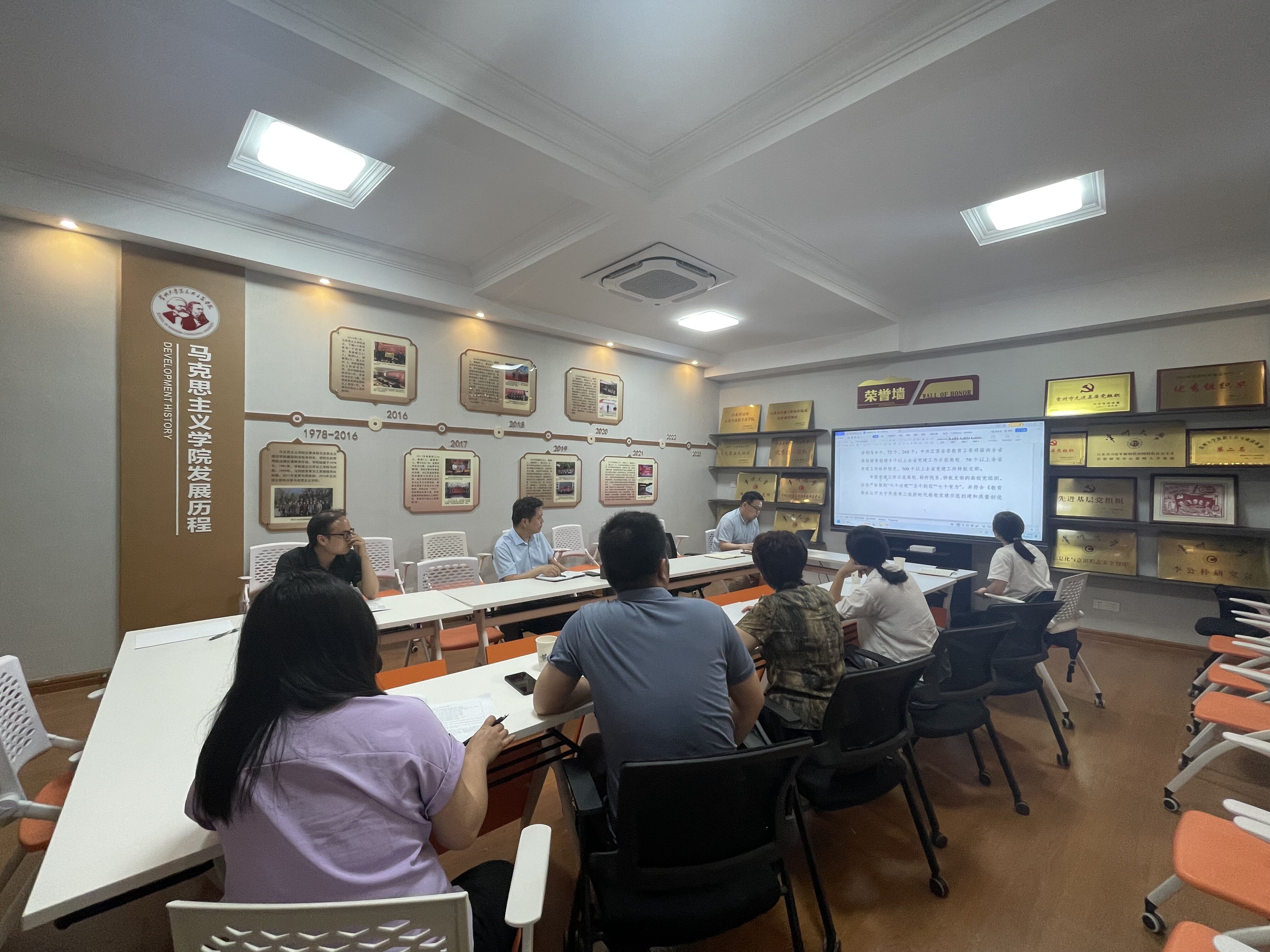 馬克思主義學(xué)院院長(cháng)助理王晨以及戚文闖老師就省級“標桿院系”的創(chuàng )建工作、建設成效等方面進(jìn)行了詳細介紹。與會(huì )人員圍繞“標桿院系”創(chuàng )建的總體思路、工作基礎、特色凝練、品牌創(chuàng )立、工作舉措等展開(kāi)了交流研討。