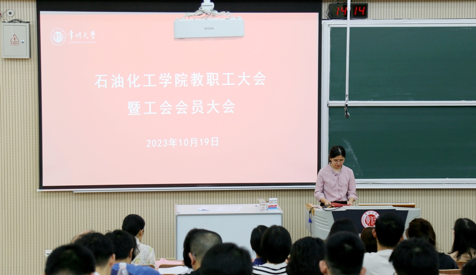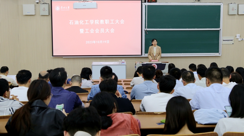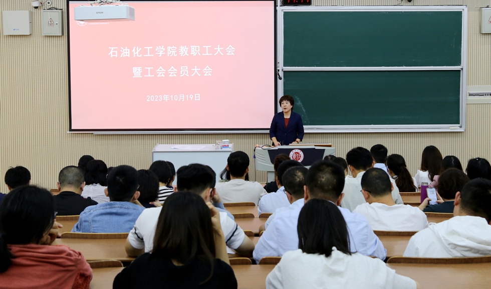 2023年10月19日下午,石油化工學(xué)院在教學(xué)樓W9階召開(kāi)2023年教職工大會(huì )暨學(xué)院工會(huì )會(huì )員大會(huì ),學(xué)院黨政領(lǐng)導、分工會(huì )主席以及全體教職工參加會(huì )議,黨委副書(shū)記劉茂燦主持會(huì )議。