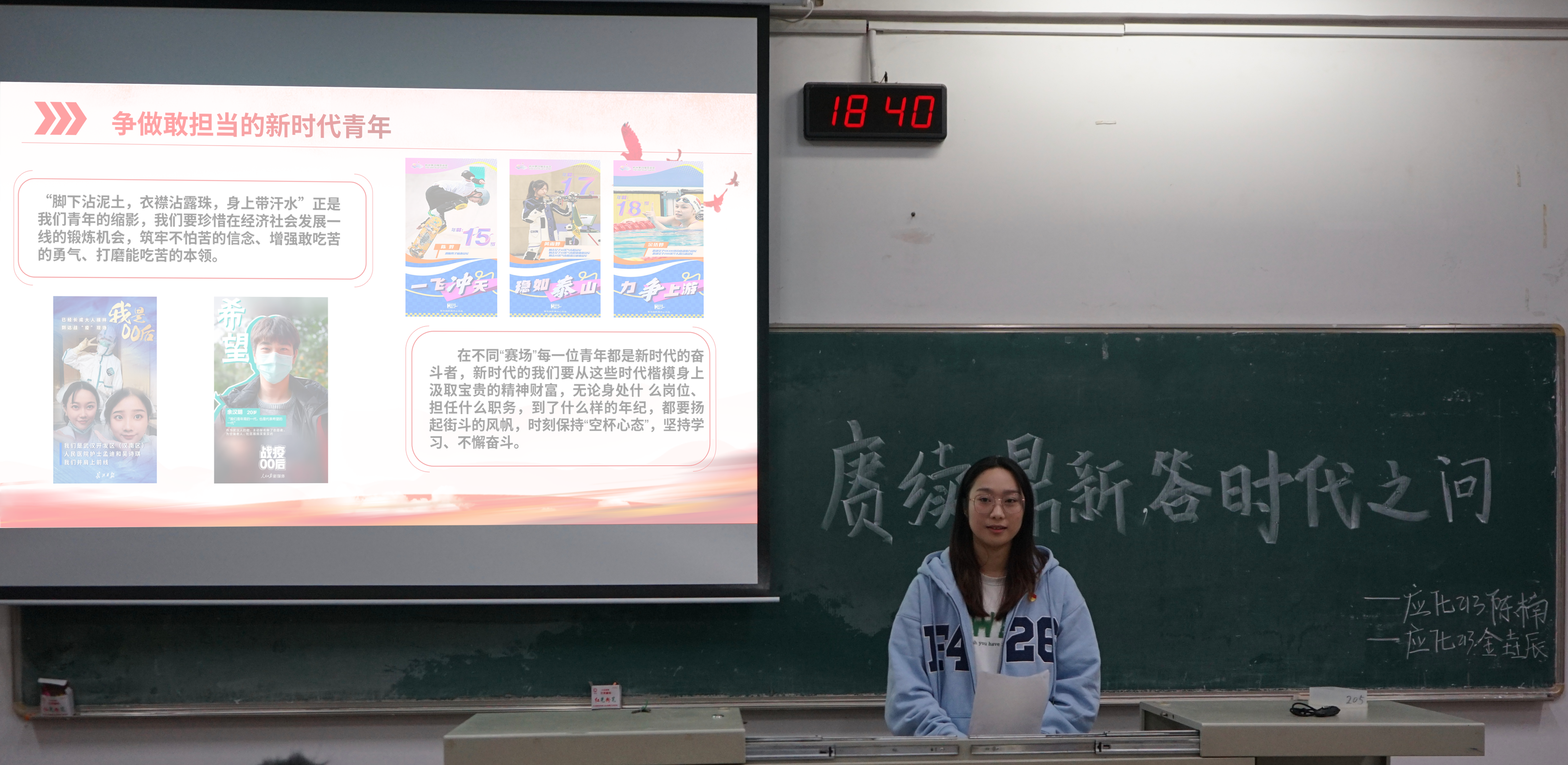 當今世界變亂交織,百年變局加速演進(jìn),人類(lèi)社會(huì )面臨前所未有的挑戰。為幫助我院學(xué)生明確時(shí)代任務(wù),答好時(shí)代問(wèn)卷,我院于10月24日在W1205舉辦“青年講師團”系列講座——賡續鼎新,答時(shí)代之問(wèn)。由我院應化213班陳楠、金垚辰主講,各年級學(xué)生代表參加。