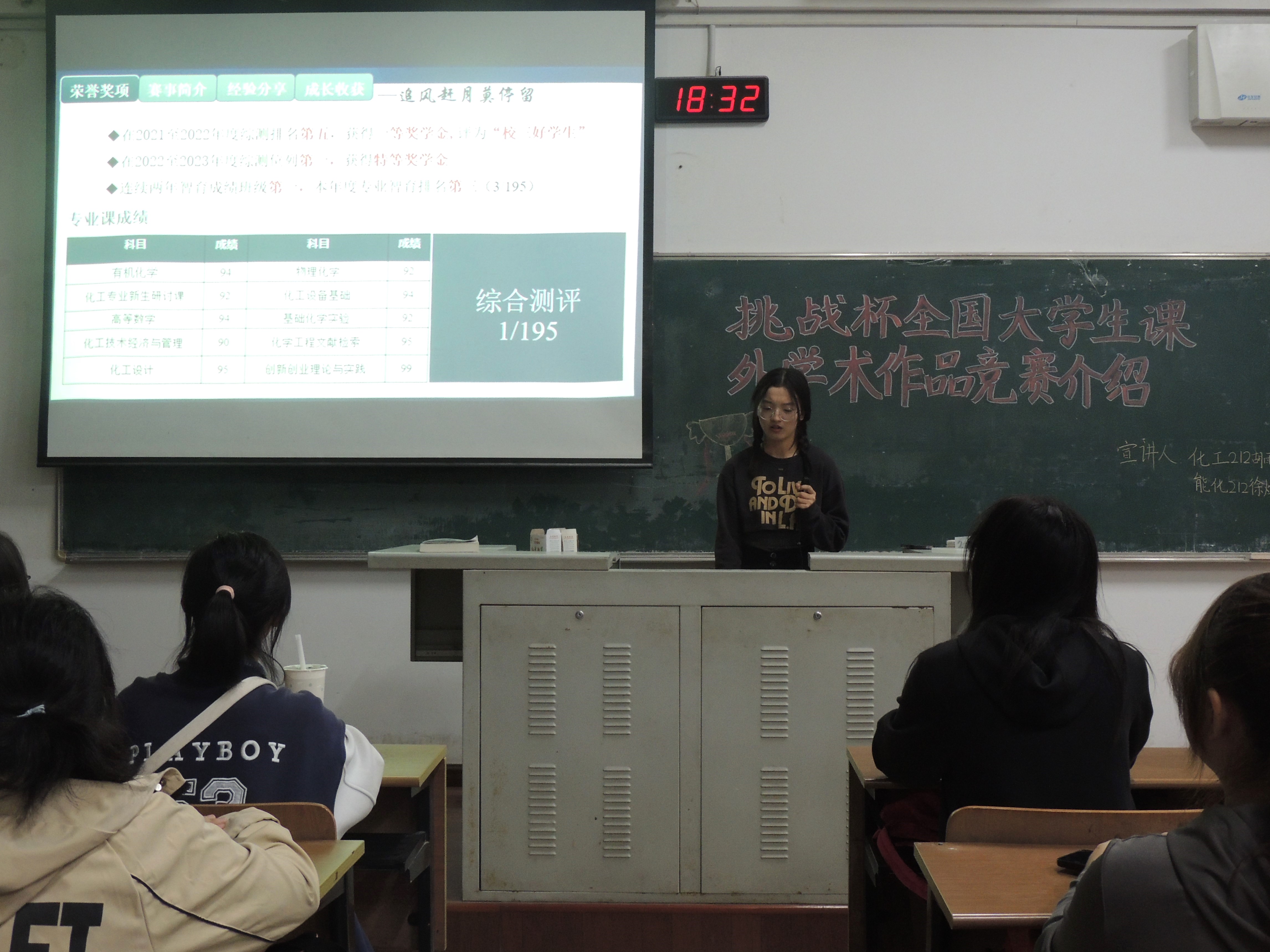 為鼓勵我院學(xué)生積極參與創(chuàng )新創(chuàng )業(yè)競賽,加強創(chuàng )新本領(lǐng)、提高學(xué)術(shù)水平和能力,我院于近日在W1210舉辦“石化青年說(shuō)”系列講座——“挑戰杯”獲獎?wù)呓?jīng)驗分享。本次講座由我院“挑戰杯”獲獎?wù)呋?12班胡雨萌、能化212班徐燁主講,各年級學(xué)生代表參加。