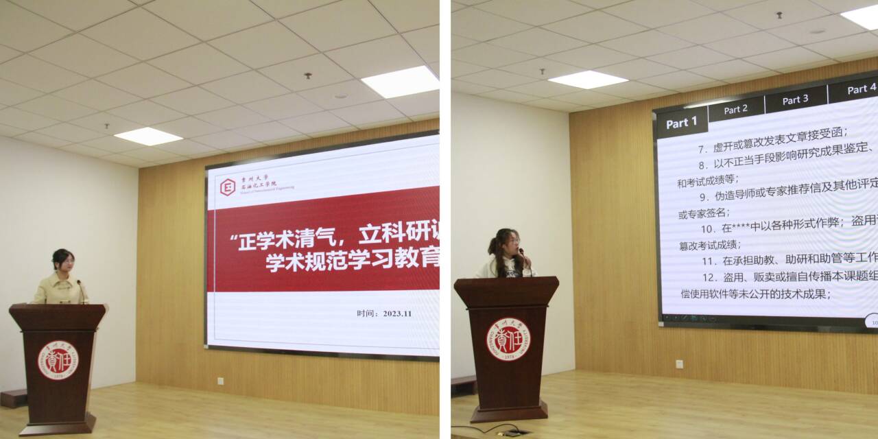 為引導研究生自覺(jué)遵守科學(xué)研究規律,強化學(xué)術(shù)規范意識,近日,我院在測試樓B109報告廳舉辦以“正學(xué)術(shù)清氣,立科研誠信”為主題的研究生學(xué)術(shù)規范學(xué)習教育宣講會(huì )。本次宣講會(huì )由仲之陽(yáng)和張纖纖同學(xué)主講,各年級班長(cháng)、團支書(shū)及研究生第三黨支部全體黨員參加學(xué)習。