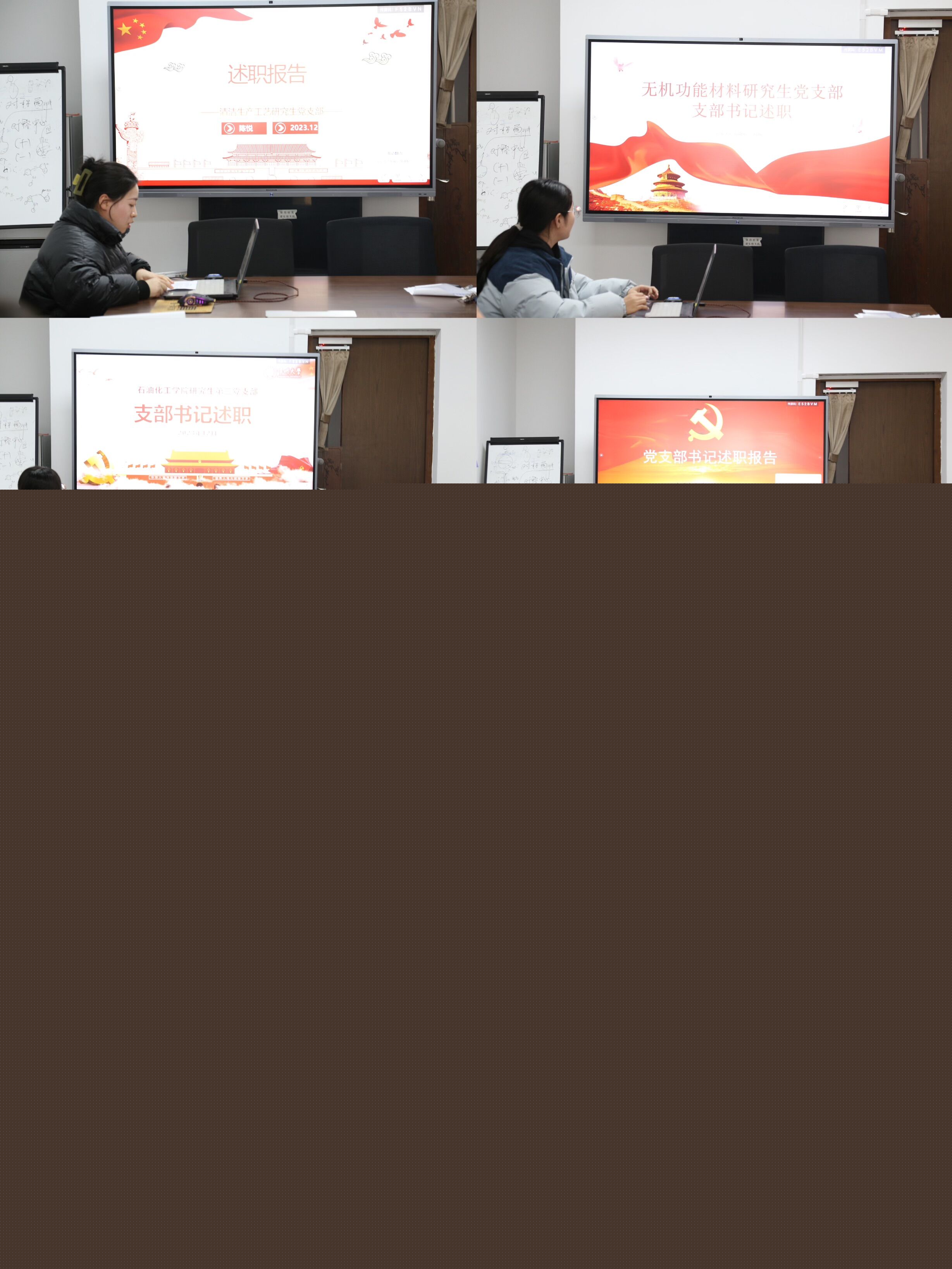 現場(chǎng)述職的8位學(xué)生黨支部書(shū)記結合2023年度本支部全面推進(jìn)黨的政治建設、思想建設、組織建設、作風(fēng)建設、紀律建設、作用發(fā)揮等情況,過(guò)去一年不斷加強黨建工作的主要做法、支部特色和亮點(diǎn)工作等方面,全方位、多角度地對過(guò)去一年的黨支部工作情況進(jìn)行總結,分析存在的問(wèn)題,展望下一年的工作規劃。劉茂燦對支部書(shū)記的述職內容進(jìn)行了點(diǎn)評,對各基層黨支部過(guò)去一年通過(guò)不懈努力取得的工作成績(jì)給予肯定,并對工作中存在的問(wèn)題提出了有針對性的建議和指導意見(jiàn)。