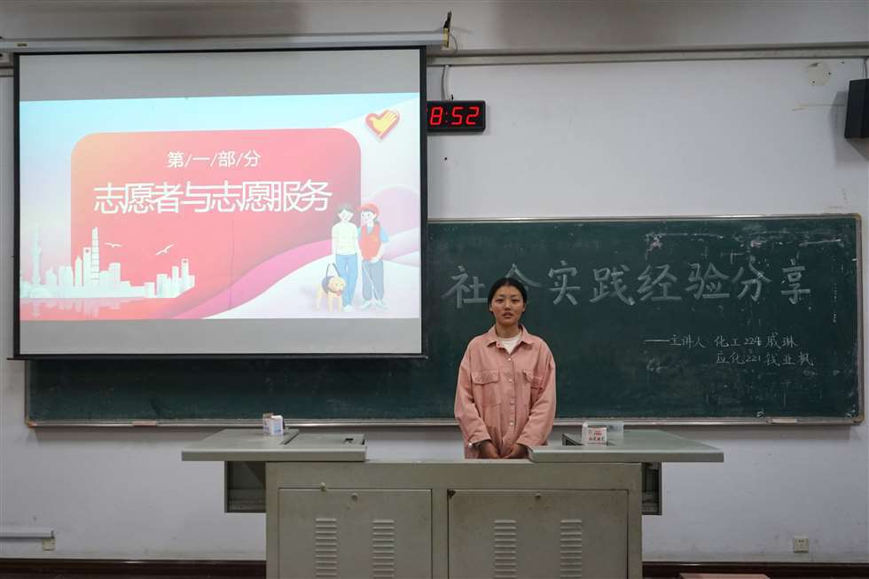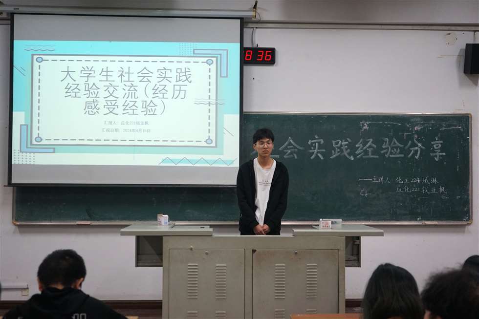 為增進(jìn)學(xué)生對于社會(huì )實(shí)踐的了解,激發(fā)學(xué)生的社會(huì )實(shí)踐熱情,營(yíng)造學(xué)院學(xué)生積極參與社會(huì )實(shí)踐的氛圍,我院于4月16日在w1201舉辦“石化青年說(shuō)”系列講座——社會(huì )實(shí)踐經(jīng)驗交流。本次講座由化工224班戚琳、應化221班錢(qián)亞楓主講,各年級學(xué)生代表參加。