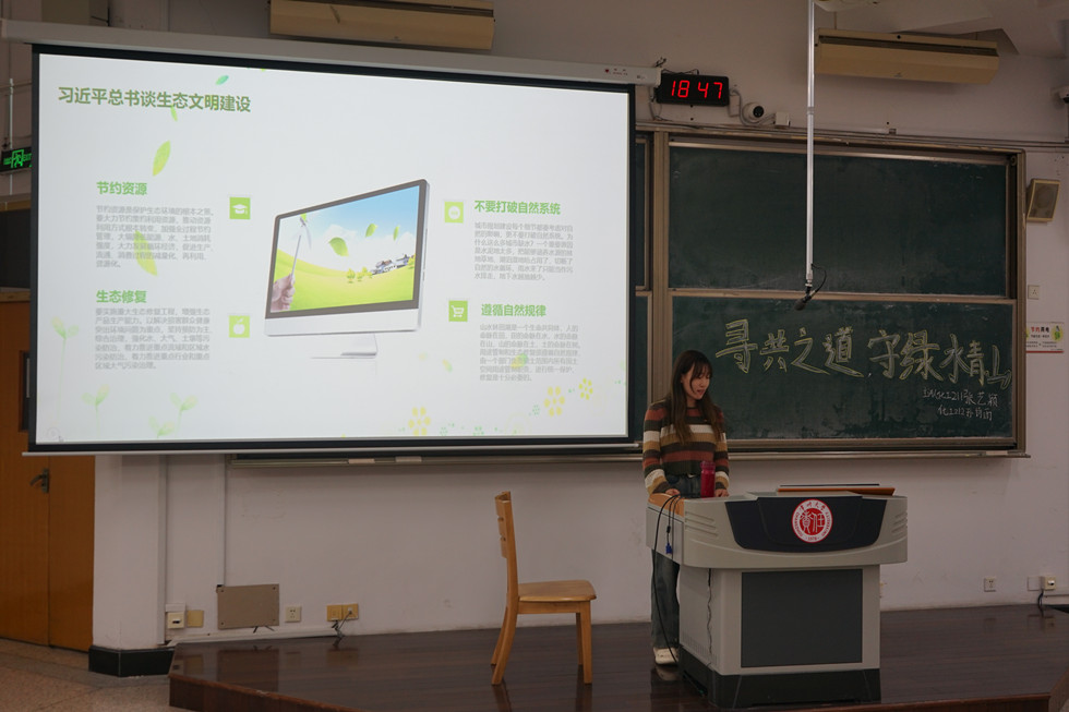 為弘揚生態(tài)文明理念,建設綠色家園,我院于4月24日在W20舉辦“青年講師團”系列講座——“尋共存之道,守綠水青山”。本次講座由我院學(xué)生第一黨支部黨員張藝穎、孫詩(shī)雨主講,各年級學(xué)生代表參加。