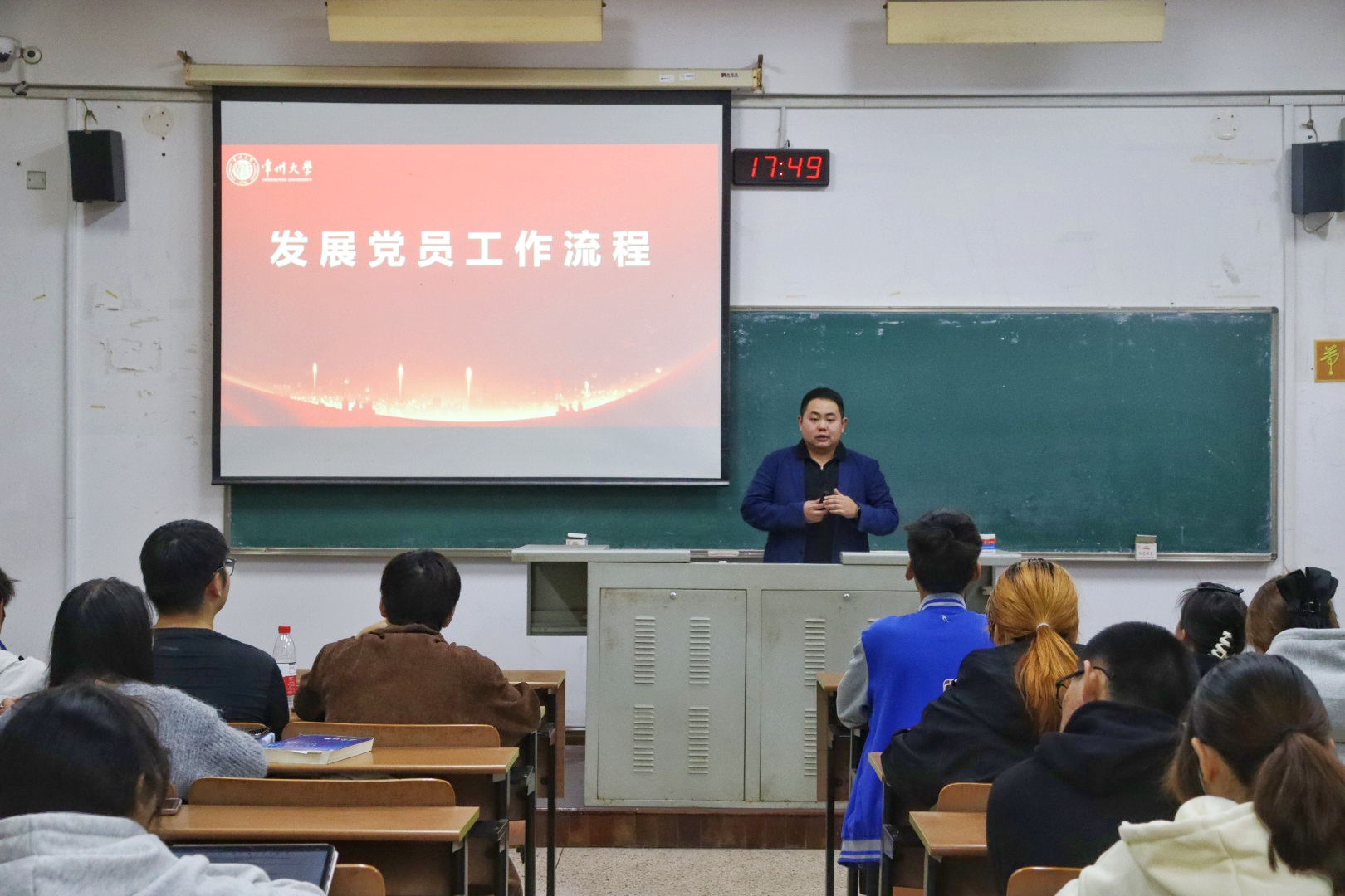 黨委組織部、黨委統戰部李彥杰以《發(fā)展黨員工作流程》為題為學(xué)員們授課