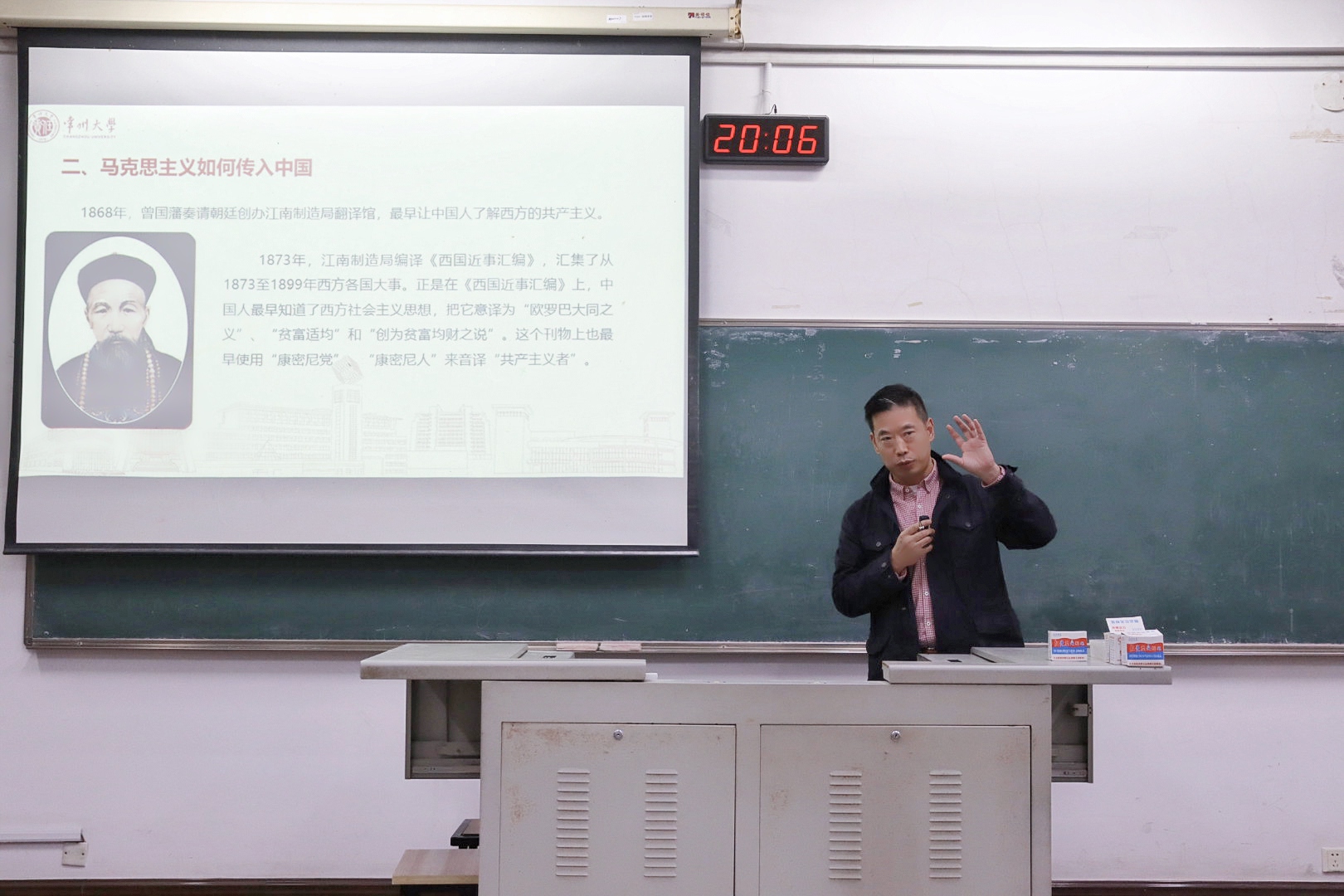 中共常州市委二十大精神宣講團成員丁恒龍教授以《開(kāi)辟馬克思主義中國化時(shí)代化新境界》為題為學(xué)員們授課