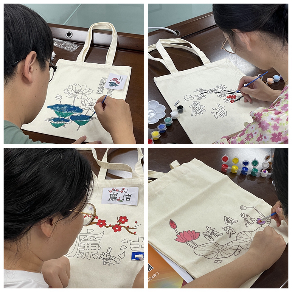 活動(dòng)現場(chǎng),大家拿起畫(huà)筆將自己對“廉潔”的領(lǐng)悟繪制在白色帆布袋上,在一筆一畫(huà)的描摹中傳遞清風(fēng)正氣,在大家的巧手描繪下,白色普通帆布包變成了獨具特色的廉潔文化“藝術(shù)品”,業(yè)緒華希望大家筑牢廉潔思想防線(xiàn),融廉于心、倡廉于行、寓廉于常,讓“學(xué)廉、悟廉、踐廉”始終貫穿于工作和生活。