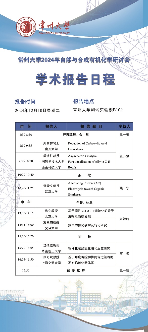 【學(xué)術(shù)會(huì )議】常州大學(xué)2024年自然與合成有機化學(xué)研討會(huì )