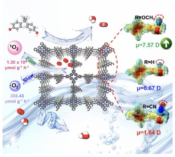 ,使其在雙酚A(BPA)降解方面展現出革命性的高效性,分別在短短2分鐘便能將10 ppm及20分鐘內將100 ppm的BPA徹底降解為無(wú)害物質(zhì)。此外,光催化過(guò)氧化氫(H2O2)的生成效率在無(wú)任何添加劑下同樣達到令人矚目的987 μmol g-1 h-1。該研究以題為“Selective Oxygen Activation by Integrating Dual Photosensitizers in Conjugated Porous Polymers and Microenvironments Manipulation for High-performance Water Purification and H2O2 Production”的論文發(fā)表在國際頂級期刊《Advanced Functional Materials》上(Adv. Funct. Mater. 2024, 2419010)。