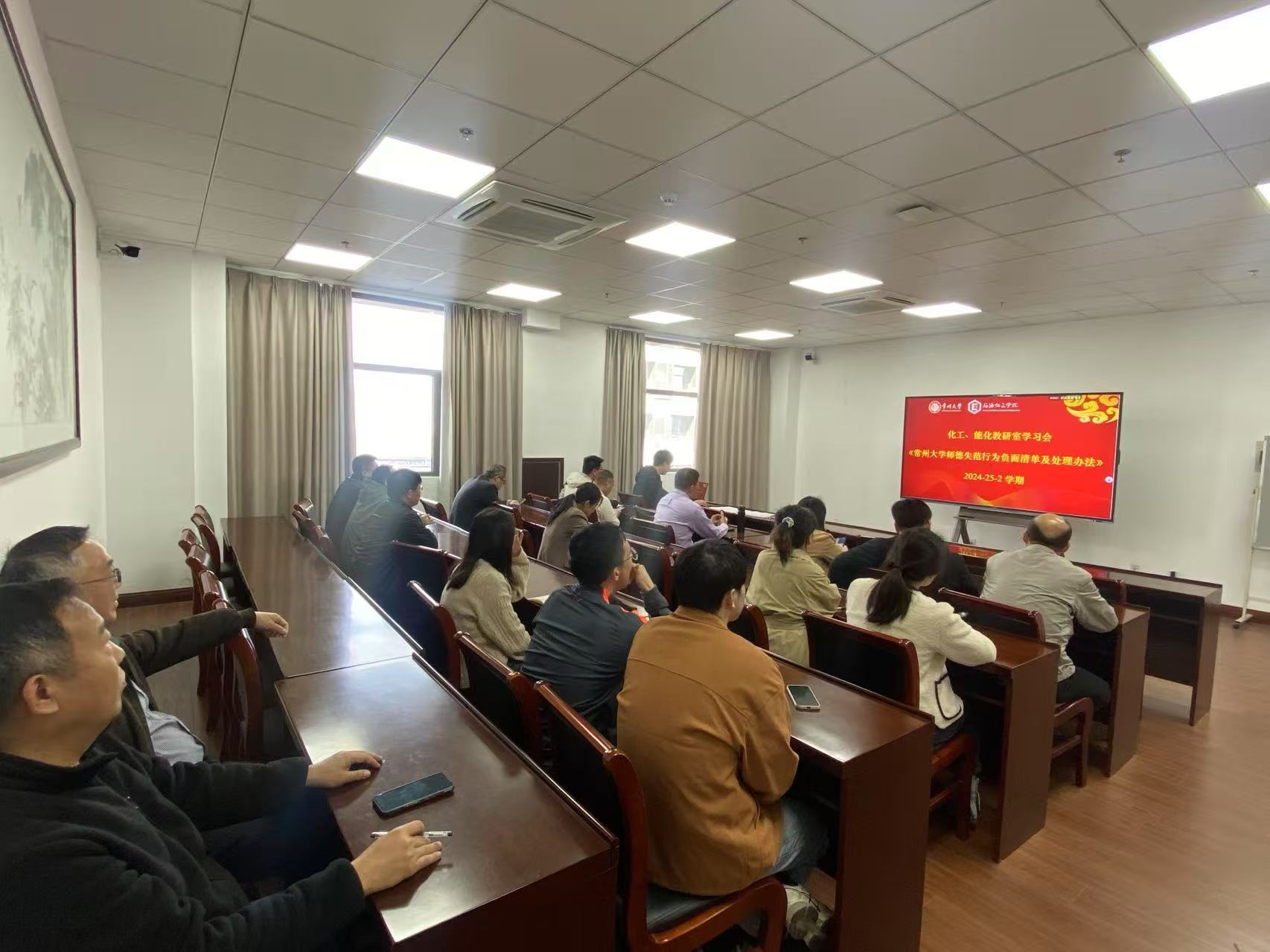 為進(jìn)一步提高教師職業(yè)道德水平,加強師德師風(fēng)建設,2025年3月24日,我院化工、能化教研室集體學(xué)習《常州大學(xué)師德失范行為負面清單及處理辦法》,化工教研室、能化教研室教師參加會(huì )議。