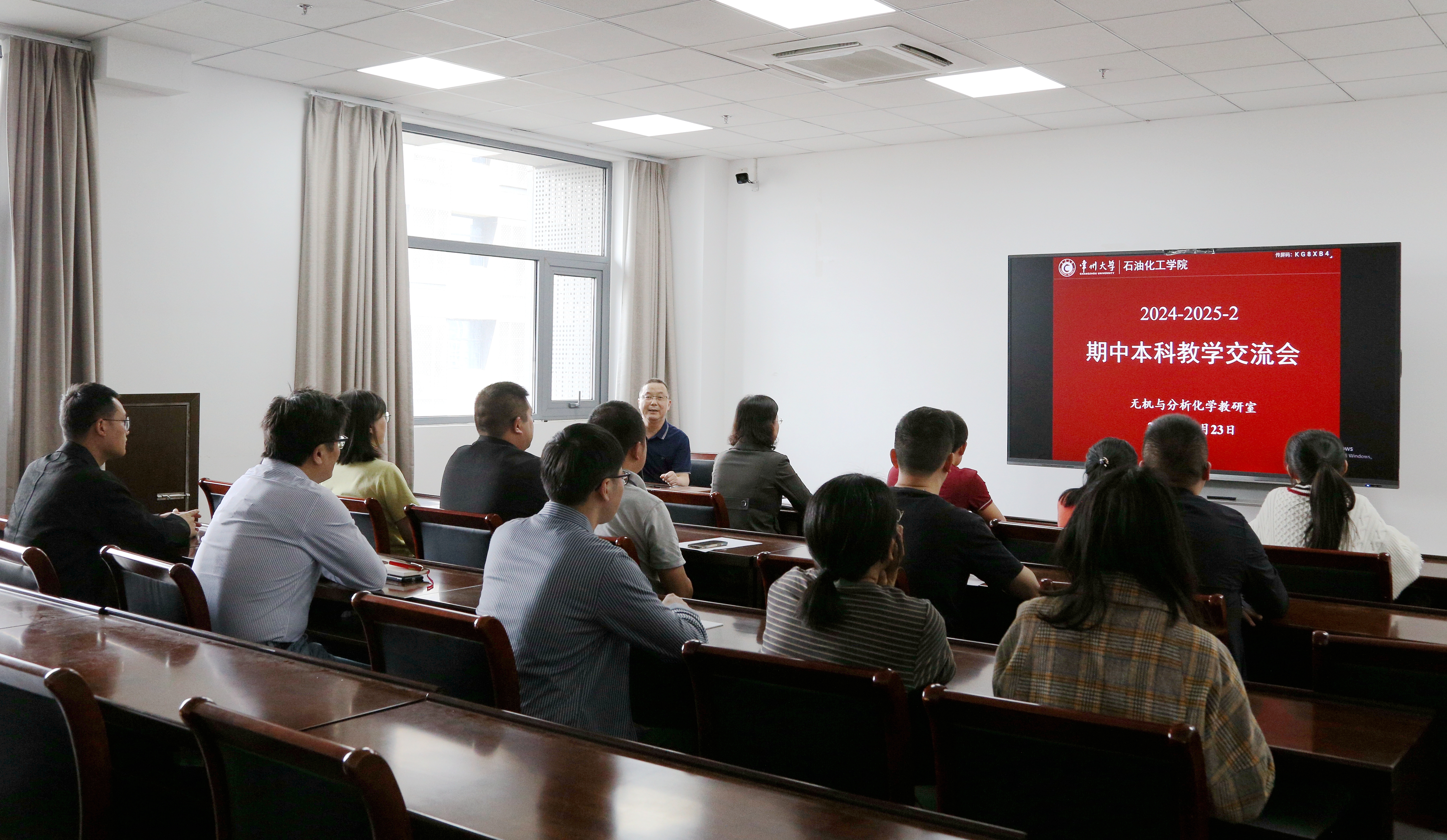 近日,我院無(wú)機與分析化學(xué)教研室在測試樓617會(huì )議室召開(kāi)2024-2025-2期中教學(xué)交流會(huì )議,我院教學(xué)副院長(cháng)黃薇教授、校督導柳娜老師和教研室教師參加了會(huì )議,會(huì )議由教研室主任戎紅仁主持。