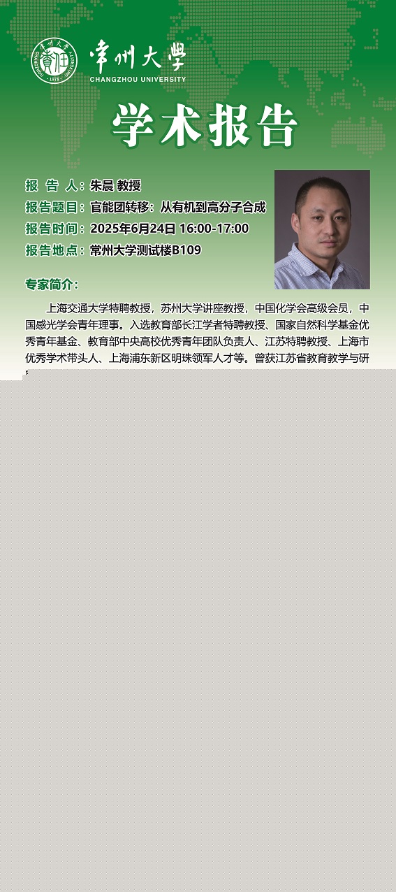 【學(xué)術(shù)報告】6月24日功能雜環(huán)研究院學(xué)術(shù)報告—Takahiko Akityama教授 學(xué)習院大學(xué) 朱晨教授 上海交通大學(xué)