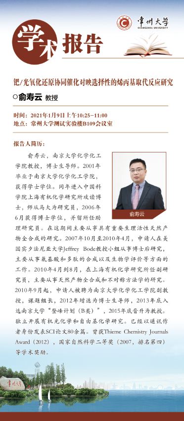 | 【學(xué)術(shù)研討會(huì )】1月9日-有機化學(xué)學(xué)科前沿及發(fā)展趨勢研討會(huì ) |