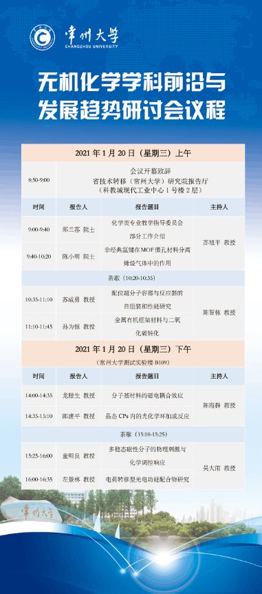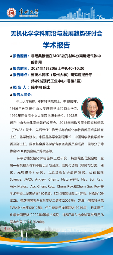 | 【學(xué)術(shù)報告】1月20日無(wú)機化學(xué)學(xué)科前沿與發(fā)展趨勢研討會(huì )學(xué)術(shù)報告 |
