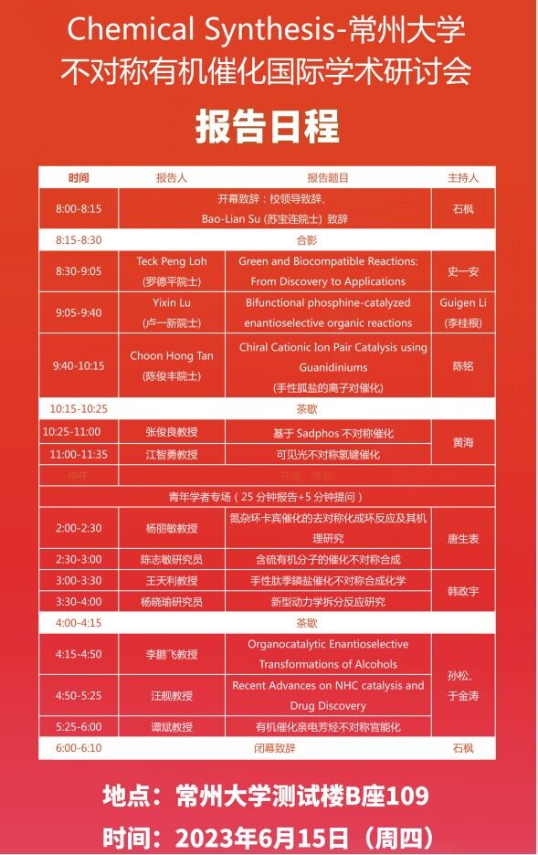 【學(xué)術(shù)會(huì )議】Chemical Synthesis-常州大學(xué)不對稱(chēng)有機催化國際學(xué)術(shù)研討會(huì )