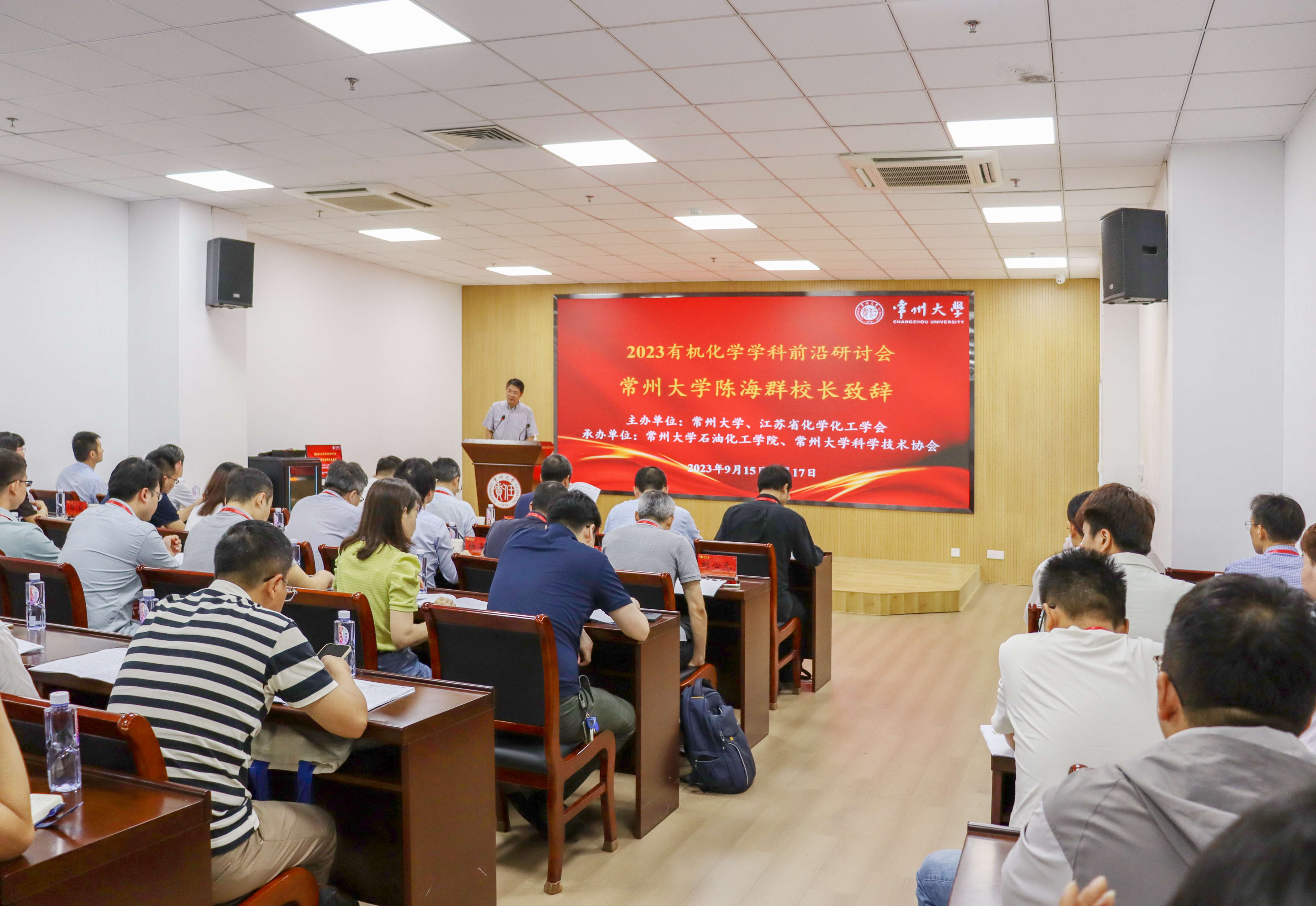 陳海群致歡迎辭,他介紹了常州大學(xué)的發(fā)展概況,并重點(diǎn)介紹了常州大學(xué)有機化學(xué)學(xué)科的發(fā)展情況和師資隊伍建設,希望與會(huì )專(zhuān)家能為常州大學(xué)的有機化學(xué)學(xué)科建設發(fā)展提出寶貴意見(jiàn)和建議。