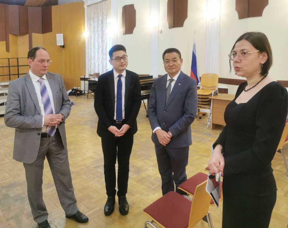 訪(fǎng)問(wèn)莫斯科國立柴可夫斯基音樂(lè )學(xué)院期間,我校代表團與校長(cháng)亞歷山大·索科洛夫,學(xué)校教育教學(xué)高級顧問(wèn)、原第一副校長(cháng)拉麗莎·斯盧茨卡婭,分管?chē)H事務(wù)副校長(cháng)瑪格麗特·庫拉德金娜進(jìn)行會(huì )見(jiàn),簽訂了兩校聯(lián)合博士人才培養、共建高水平國際音樂(lè )節、大師班、高水平藝術(shù)實(shí)踐、共建科研團隊等全面合作協(xié)議。會(huì )后,代表團參觀(guān)了學(xué)校著(zhù)名的法因貝格和涅高茲鋼琴教室、大小音樂(lè )廳及著(zhù)名音樂(lè )家雕像陳列室。
