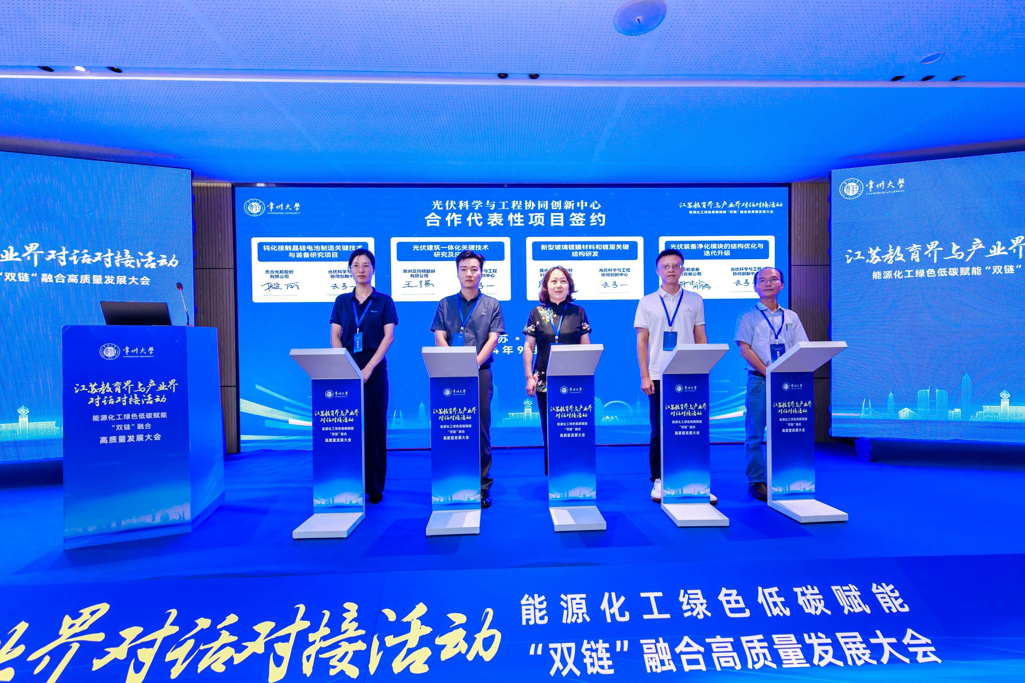 9月19-20日,由江蘇省教育廳指導,常州大學(xué)主辦,江蘇省先進(jìn)催化與綠色制造協(xié)同創(chuàng )新中心(簡(jiǎn)稱(chēng)“催化協(xié)同中心”)、江蘇省光伏科學(xué)與工程協(xié)同創(chuàng )新中心(簡(jiǎn)稱(chēng)“光伏協(xié)同中心”)聯(lián)合承辦的江蘇教育界與產(chǎn)業(yè)界對話(huà)對接活動(dòng)——能源化工綠色低碳賦能“雙鏈”融合高質(zhì)量發(fā)展大會(huì )在常州大學(xué)金壇教育科創(chuàng )園舉行。