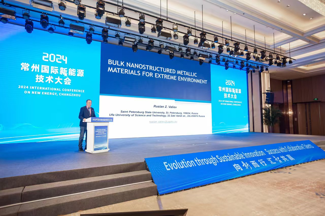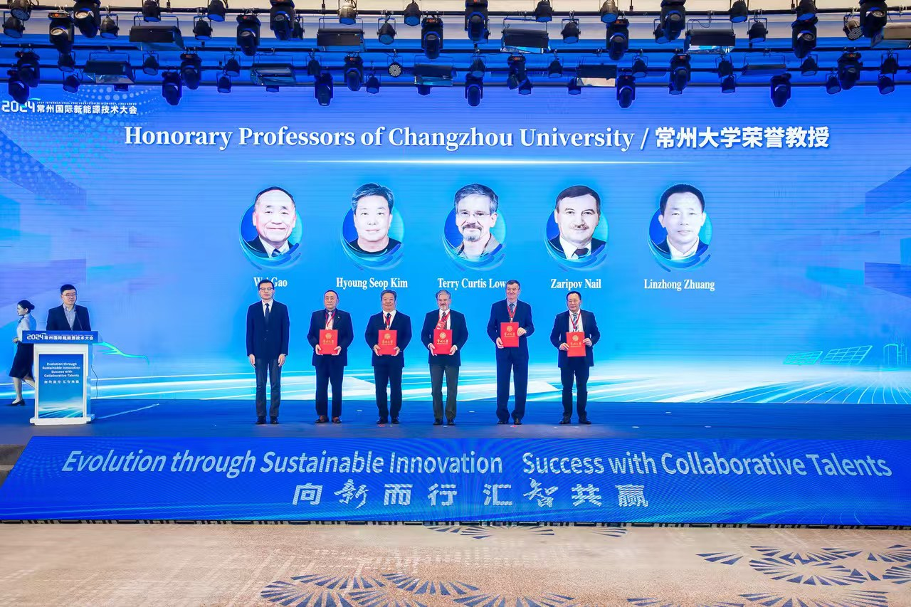 | 11月3日-5日,2024常州國際新能源技術(shù)大會(huì )在常州舉行。作為第22屆中國國際人才交流大會(huì )江蘇分會(huì )場(chǎng)活動(dòng),此次會(huì )議由常州大學(xué)主辦,江蘇省教育廳、江蘇省科學(xué)技術(shù)廳、江蘇省科學(xué)技術(shù)協(xié)會(huì )指導,并得到了常州市委人才工作領(lǐng)導小組辦公室、常州市科學(xué)技術(shù)局、常州市科學(xué)技術(shù)協(xié)會(huì )、中國再生資源產(chǎn)業(yè)技術(shù)創(chuàng )新戰略聯(lián)盟、江蘇省對外科技促進(jìn)會(huì )和江蘇省海外人才創(chuàng )新創(chuàng )業(yè)聯(lián)盟等多個(gè)單位的支持。 江蘇省科學(xué)技術(shù)協(xié)會(huì )二級巡視員楊文新,江蘇省教育廳對外合作與交流處副處長(cháng)汝益仙,江蘇省科學(xué)技術(shù)廳人才處副處長(cháng)陳利琴,常州市人民政府副市長(cháng)蔣鵬舉,常州市政府外事辦副主任沈煉,常州科學(xué)技術(shù)局副局長(cháng)陸,常州市科協(xié)主席任洪興,中國-東盟信息港股份有限公司高級副總裁吳玉青,世界綠色設計組織總干事邢雷,國家人才計劃入選者、北京科技大學(xué)教授莊林忠,新西蘭皇家科學(xué)院/工程院院士、奧克蘭大學(xué)高唯,歐洲科學(xué)院院士、烏法科技大學(xué)魯斯蘭·瓦列耶夫,皇家愛(ài)丁堡學(xué)會(huì )院士、倫敦瑪麗女王大學(xué)馬克·布拉德利,韓國國家工程院/科學(xué)技術(shù)翰林院院士、浦項科技大學(xué)金炯燮,中國政府友誼獎獲得者、俄羅斯烏法科技大學(xué)教授伊格·亞歷山卓夫,NanoSPD國際組織副主席、美國科羅拉多礦業(yè)大學(xué)特里·柯蒂斯·洛,烏法科技大學(xué)校長(cháng)瓦金·扎哈羅夫,烏法科技大學(xué)副校長(cháng)麗塔·菲利波娃,泰國瓦萊嵐大學(xué)副校長(cháng)素威特·武提蘇提米塔維,香港恒生大學(xué)副校長(cháng)梁偉強,馬來(lái)西亞拿督,東盟教育聯(lián)合會(huì )會(huì )長(cháng)謝嘉平,澳大利亞迪肯大學(xué)實(shí)驗室主任利瑪·拉波伏等來(lái)自16個(gè)國家和地區的64位外籍專(zhuān)家學(xué)者,以及常州市科學(xué)術(shù)協(xié)會(huì )、企業(yè)家代表200余人參加專(zhuān)場(chǎng)會(huì )議。常州大學(xué)黨委書(shū)記徐守坤,副校長(cháng)王建浦,黨委常委、副校長(cháng)李忠玉,黨委常委、副校長(cháng)李亞飛,副校長(cháng)晏成林,黨委常委、組織部部長(cháng)秦義出席會(huì )議。常州大學(xué)相關(guān)職能部門(mén)和學(xué)院負責人參加會(huì )議。王建浦主持大會(huì )開(kāi)幕式。