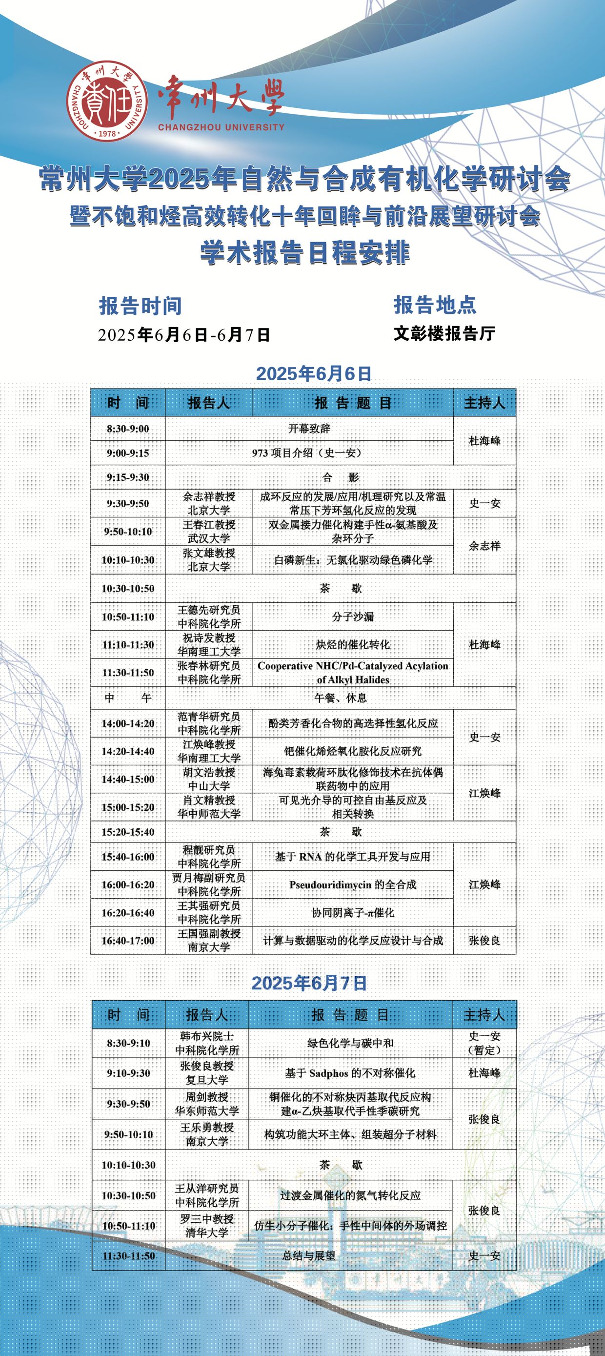 | 6月6日-7日(石化學(xué)院)常州大學(xué)2025年自然與合成有機化學(xué)研討會(huì ) |