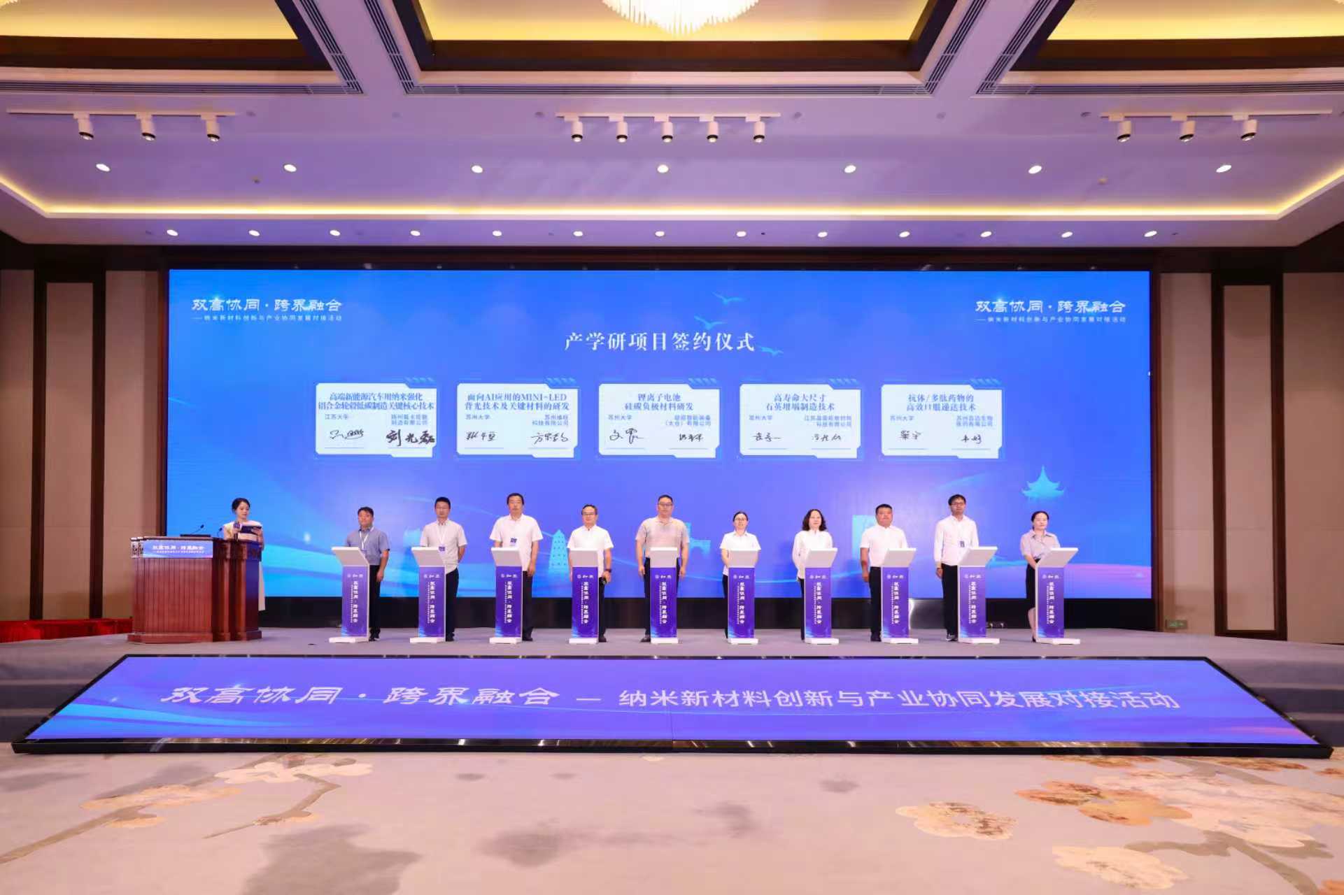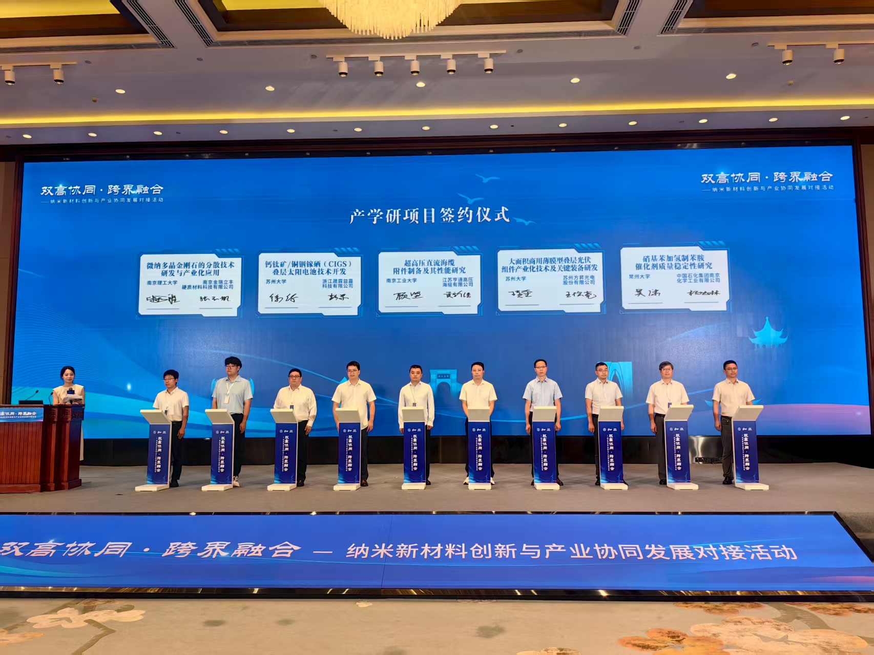 蘇州納米科技協(xié)同創(chuàng )新中心與全國高校先進(jìn)材料區域技術(shù)轉移轉化中心(江蘇)簽署合作協(xié)議,中國藥科大學(xué)等6所高校協(xié)同創(chuàng )新中心與全國高校生物醫藥區域技術(shù)轉移轉化中心(江蘇蘇州)達成共建共識,10個(gè)校企合作項目同步簽約,其中我校光伏科學(xué)與工程協(xié)同創(chuàng )新中心、先進(jìn)催化與綠色制造協(xié)同創(chuàng )新中心分別與江蘇晶盛旺新材料科技有限公司、中石化南京化工研究院有限公司簽約合作項目。常州大學(xué)等江蘇高校納米新材料領(lǐng)域多項重大科技成果同步發(fā)布,涵蓋光伏、生物醫藥、環(huán)境治理、半導體材料等關(guān)鍵領(lǐng)域。