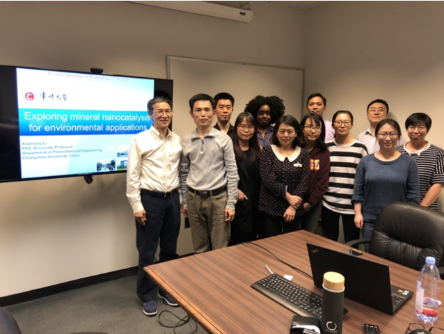 | 受?chē)易匀豢茖W(xué)基金與江蘇省國際合作項目資助,2018年1-2月,我室教師李霞章副研究員赴美國特拉華大學(xué)進(jìn)行短期科研合作,期間受該校先進(jìn)電子顯微中心主任Ni Chaoying教授邀請,作了題為“Mineral-based nanocatalyst for environmental applications”的學(xué)術(shù)報告,另外還受佐治亞理工學(xué)院Chen Yongsheng教授邀請,赴該校做了題為 “Exploring mineral nanocatalysis for environmental applications”的學(xué)術(shù)報告,介紹了近年來(lái)團隊成員在新型納米礦物材料的構建及環(huán)境催化應用領(lǐng)域取得的相關(guān)成果以及最新進(jìn)展,并與兩校相關(guān)課題組的師生進(jìn)行了深入的探討與交流。通過(guò)學(xué)術(shù)報告,增進(jìn)了雙方研究方向的了解,達成了進(jìn)一步合作的意向,提升了我院國際學(xué)術(shù)交流合作水平。