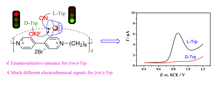 近日,青年教師吳大同與孔泳教授合作報道了基于β-環(huán)糊精衍生的索烴分子的制備,同時(shí)作為功能性分子實(shí)現基于電化學(xué)的手性識別研究。這是吳大同博士進(jìn)入常州大學(xué)工作以來(lái)在IF > 5.0期刊上發(fā)表的第四篇論文。該工作得到了國家自然科學(xué)基金(21804013)和江蘇省自然科學(xué)基金(BK20171194)的資助。